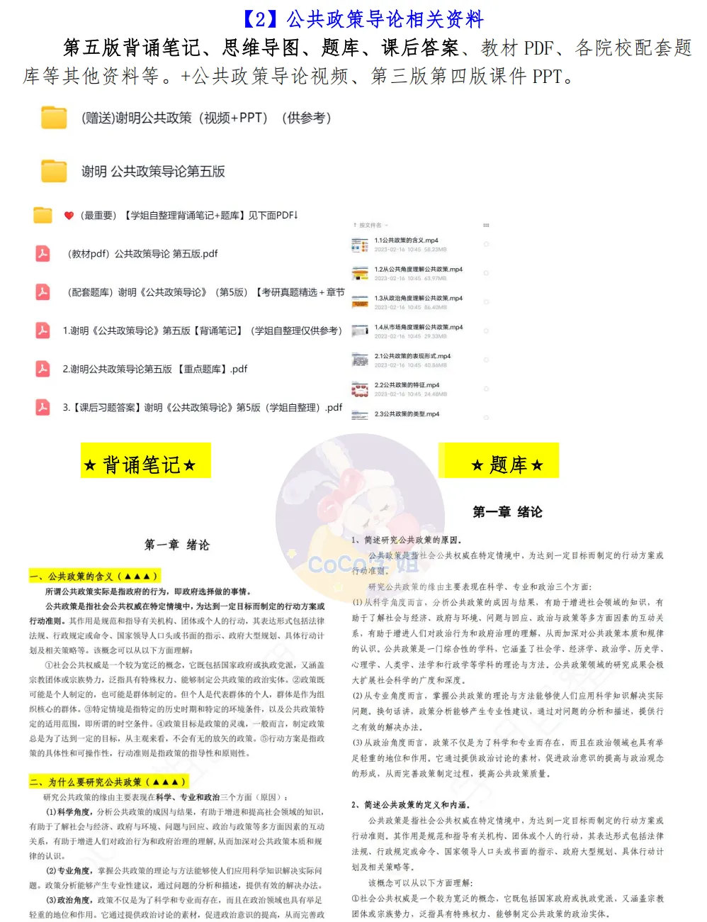 题库是每章节有可能出的题目,背诵后查漏补缺。详细可点击→资料介绍|谢明公共政策导论题库