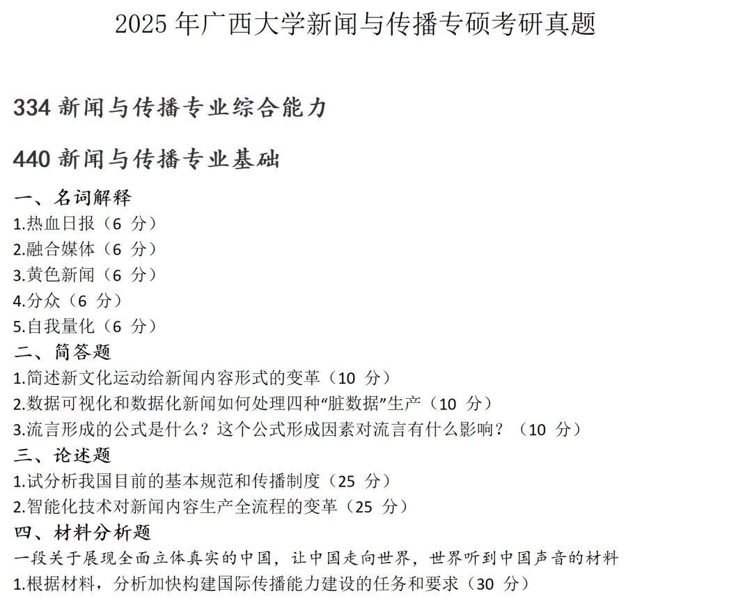 广西大学新闻与传播考研真题2018-2025历年