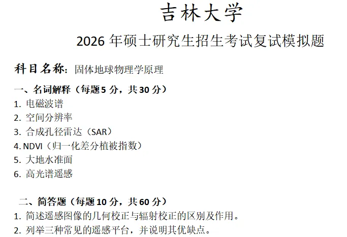 吉林大学固体地球物理学原理考研复试真题模拟含答案