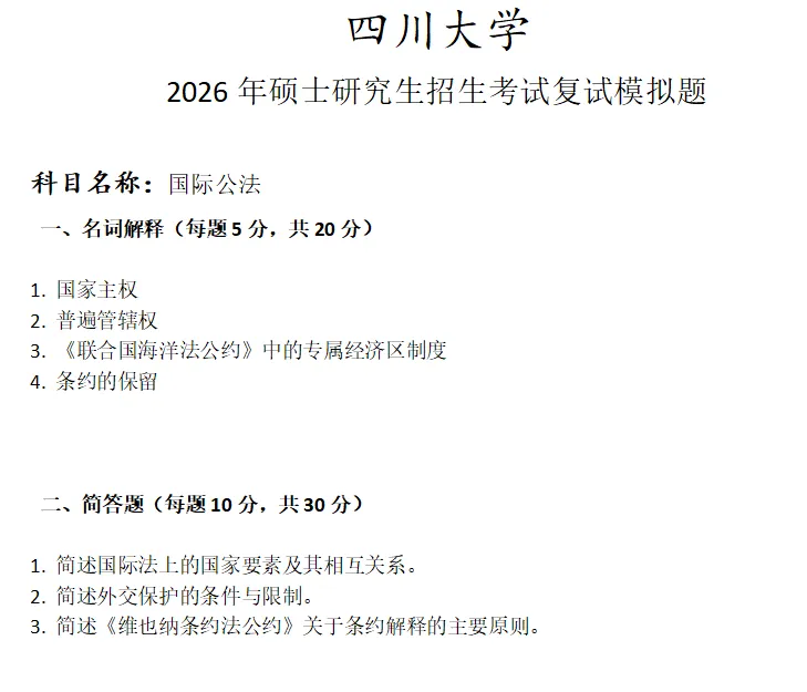 >四川大学国际公法考研复试真题模拟