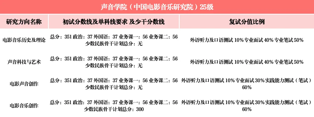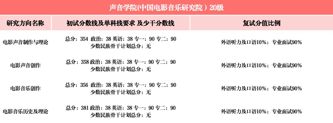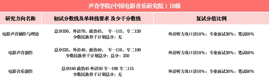 本考试科目重点考察电影声音(或音乐录音等)创作相关的基础工艺技术、基本理论和实践创作能力,要求学生了解中外电影历史,电影及电影声音的主要经典理论,掌握电影声音(或音乐录音等)技术的主要基础知识,如:录音声学、数字音频、声音合成、声处理设备(包括均衡,压缩,混响等)、话筒、工作站、设备系统环境等方面的原理/结构/基本使用方法,对目前国内(外)的电影声音(或音乐录音等)创作与工艺方法,包括:同期录音(或音乐现场录音)、声音编辑、拟音、效果制作、混录(或音乐混音)等技术和工艺环节等方面有比较深入的了解和一定的实践经验,熟悉国内(外)先进的电影声音(或音乐录音等)制作标准、工艺、创作手段和方法,并能综合运用以上知识对电影声音(或音乐录音等)创作进行比较深入的研究、分析与判断。