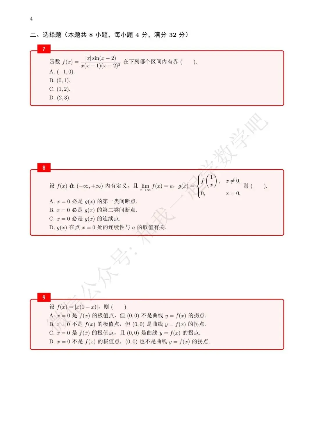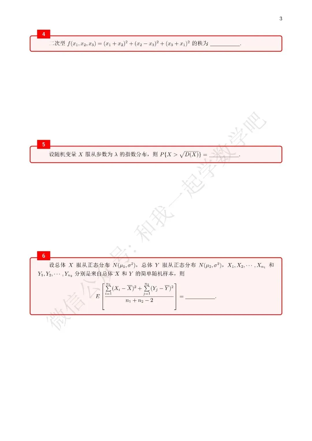 为了方便各位小伙伴们刷题,我重新排版了04年数三的真题,在每道题下面都增加了空白,方便大家写答案,记录相关知识点。