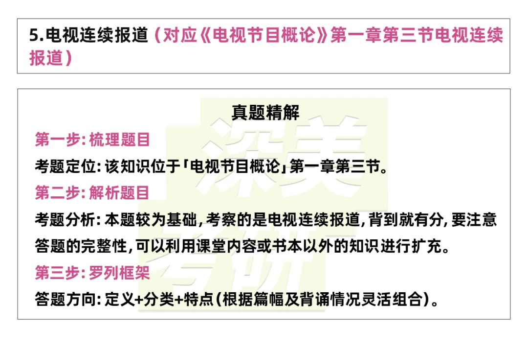 电视连续报道,是以现代电子技术为传播手段,以图像、声音、文字等为传播符号,在一定时期内,围绕某一新闻事件事态,进行多篇跟踪式深度报道的新闻类电视节目形态。电视连续报道各单元之间联系紧密,互为因果,由于报道持续时间长,可以形成浩大的声势和强大的舆论力量。电视连续报道中的每个单元都在披露事件的最新变化,记者不必等待事件的结局,而是以事件的变动趋向为依据,就其变化的各个阶段随采随报。(定义)电视连续报道可进一步细分为进行式电视连续报道、反应式电视连续报道、追溯式电视连续报道三种形态。这三种形态往往你中有我、我中用你,彼此补充,相得益彰。(分类)电视连续报道的主要特征是时间的时新性、内容的广博性、叙事的悬念性、结构的完整性、节奏的变化性。(特点)