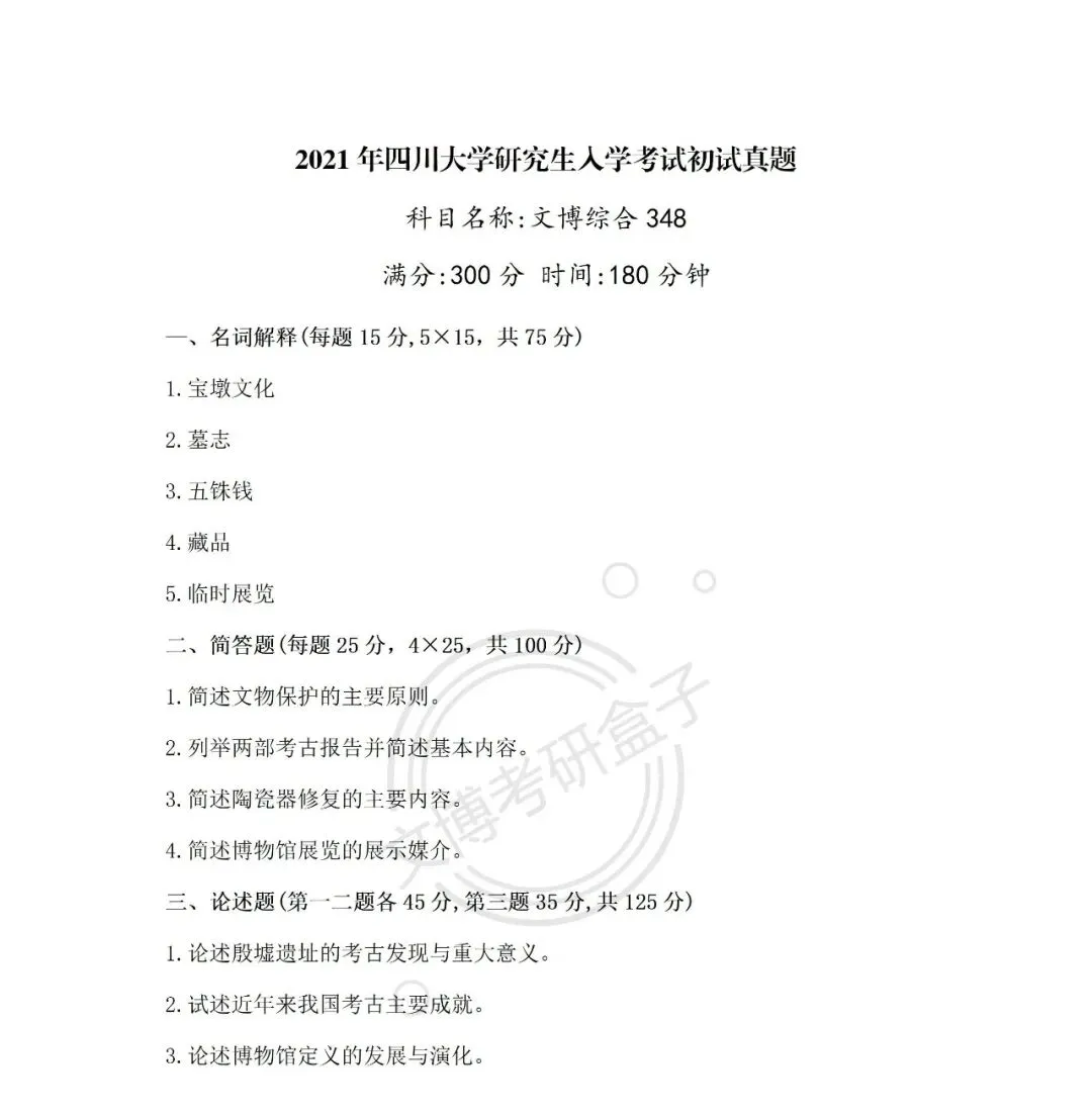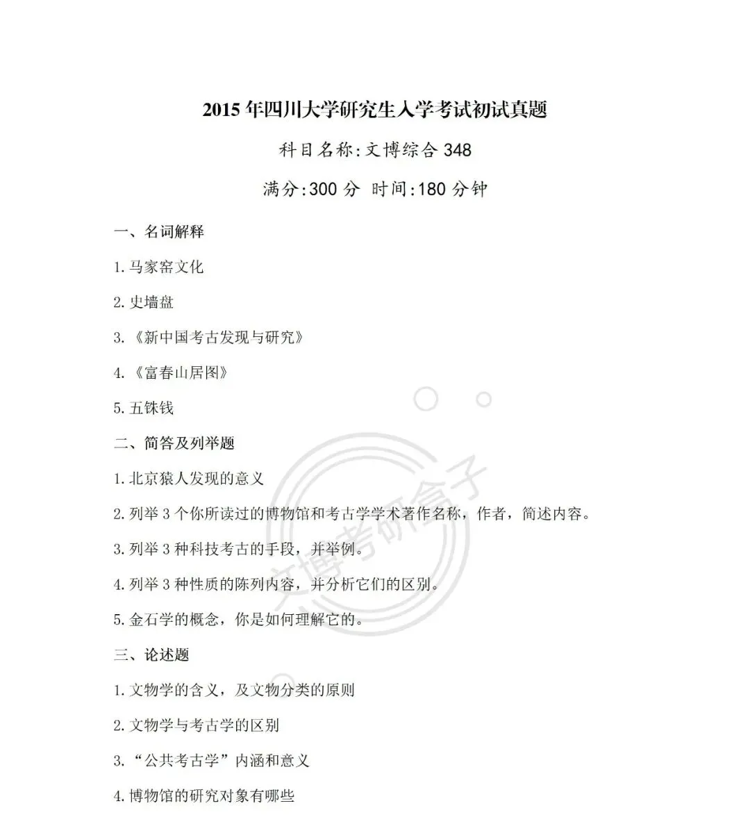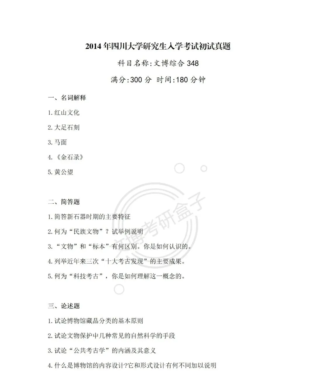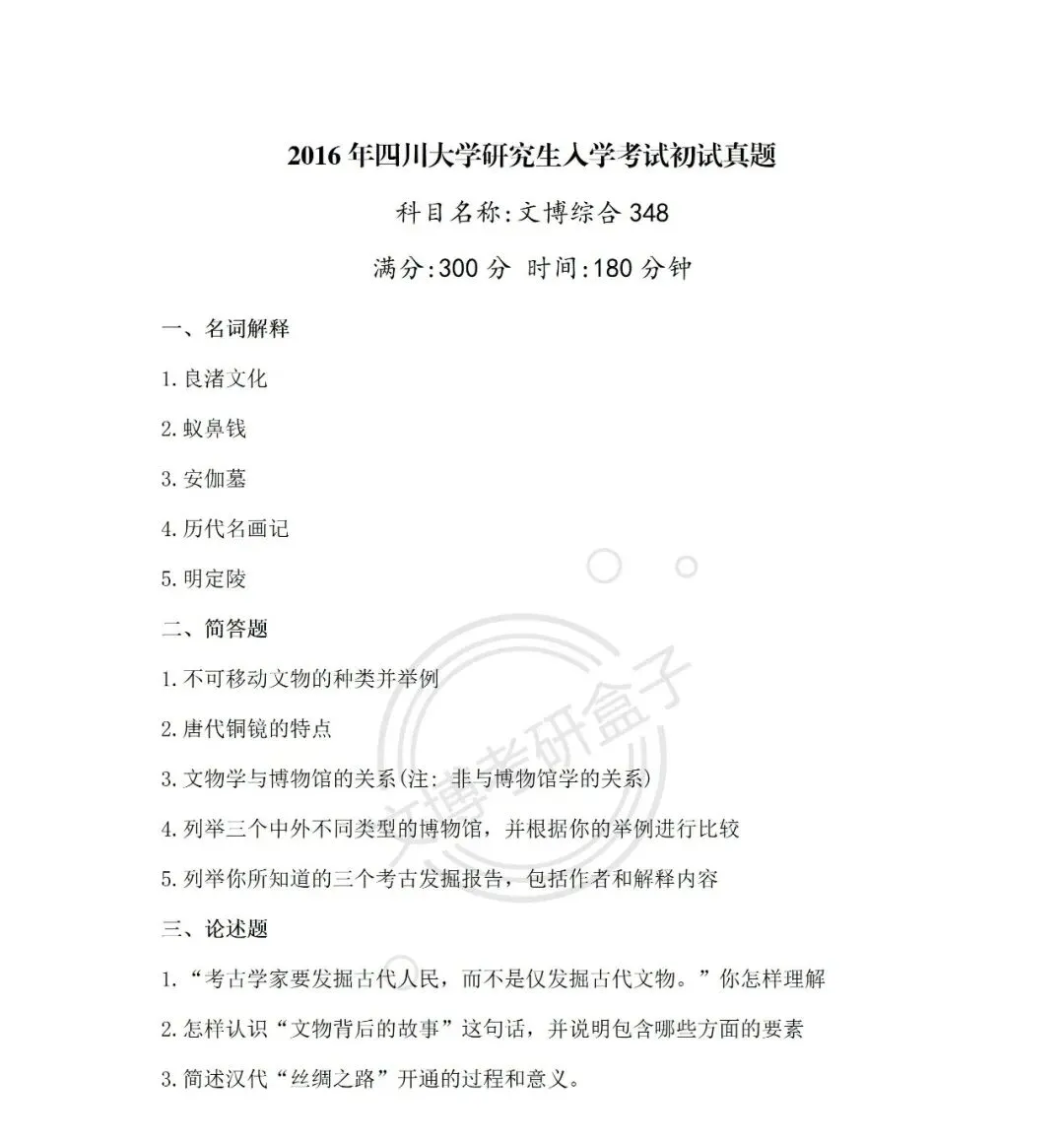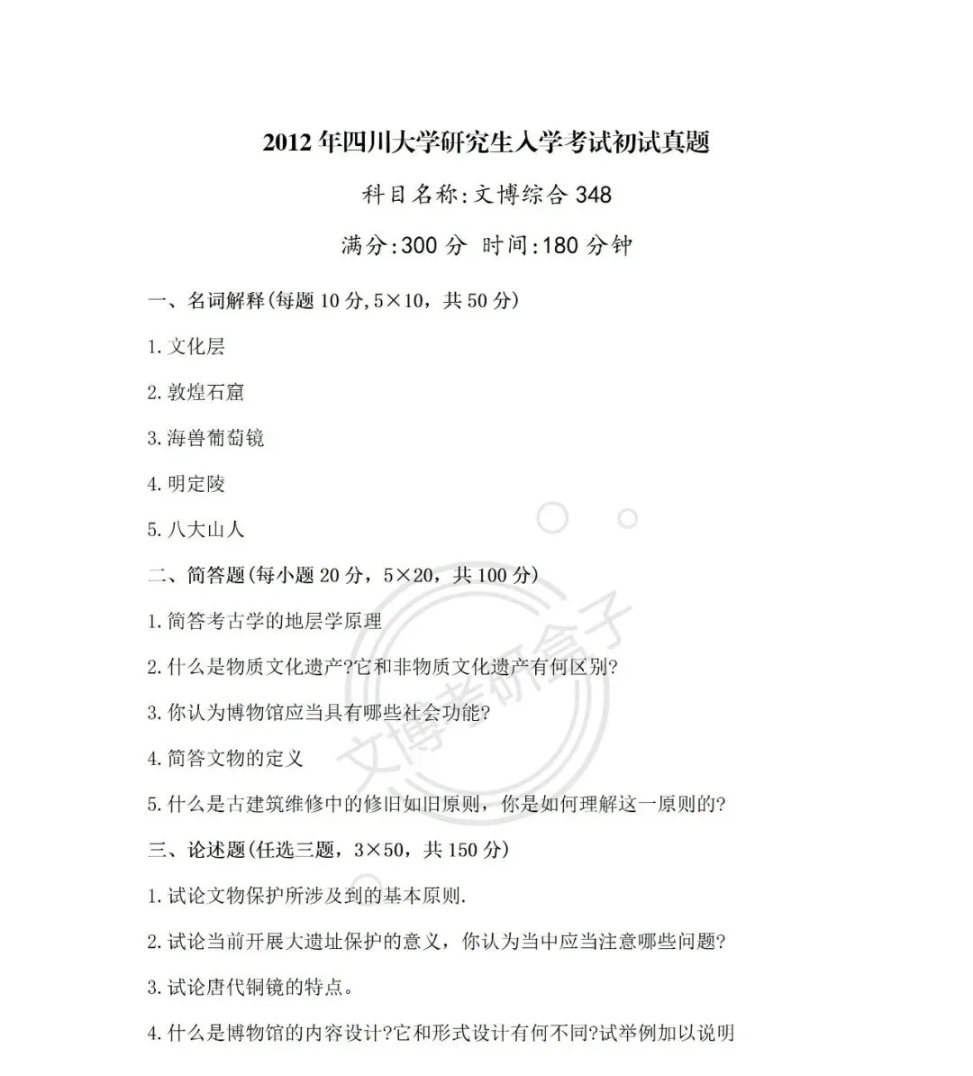 文博考研 | 2011—2026年四川大学『博物馆专业、文物专业真题合集』