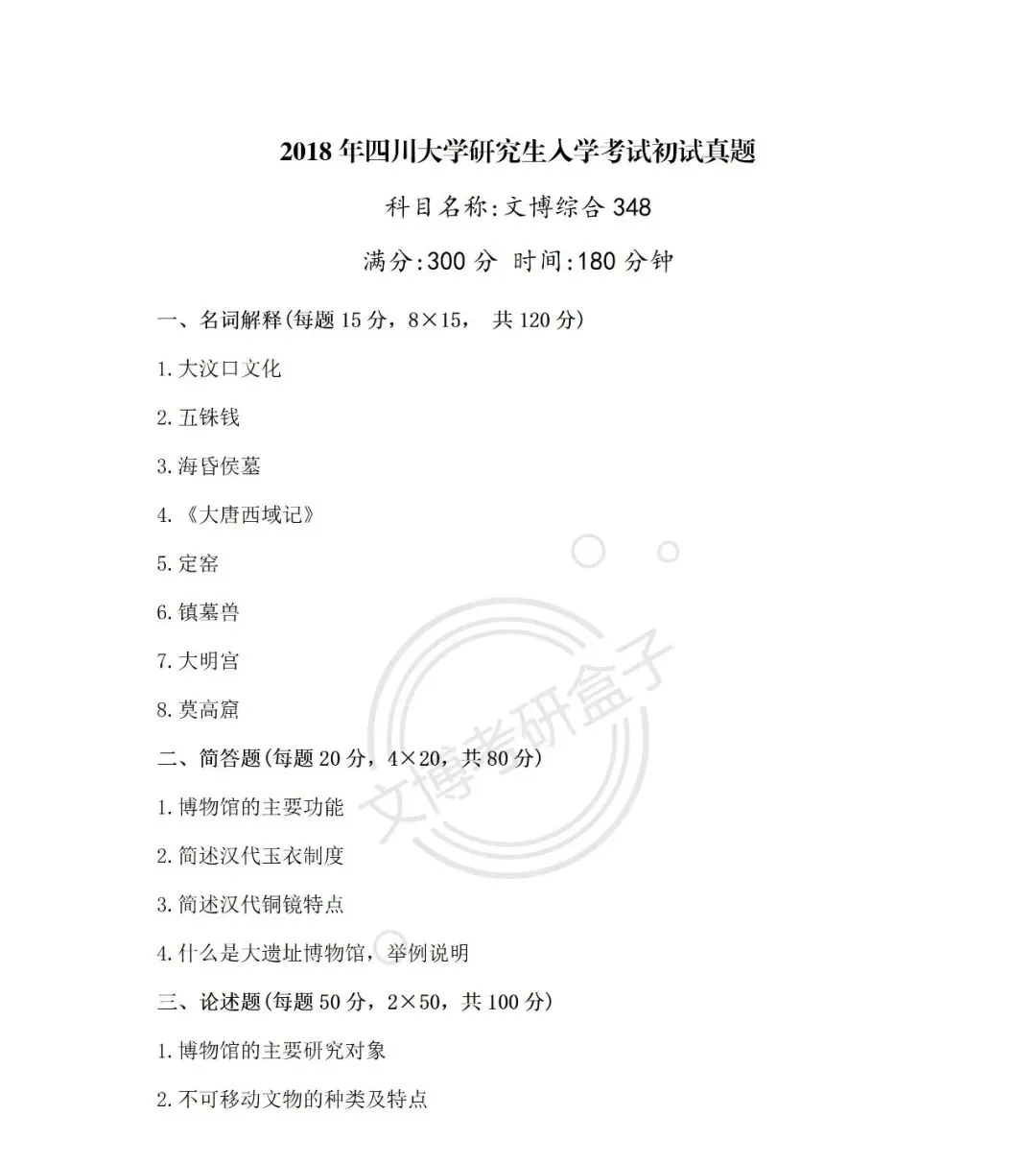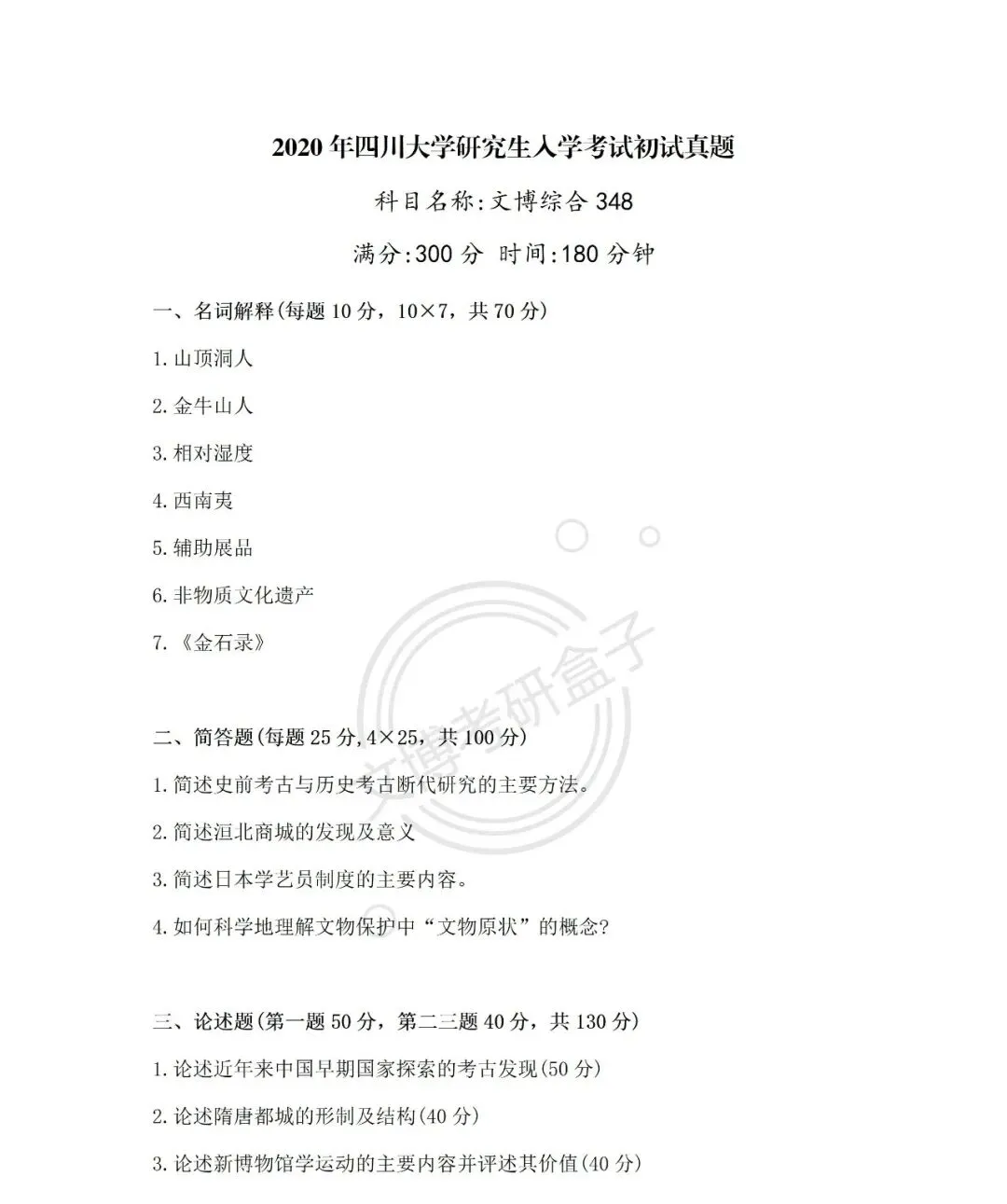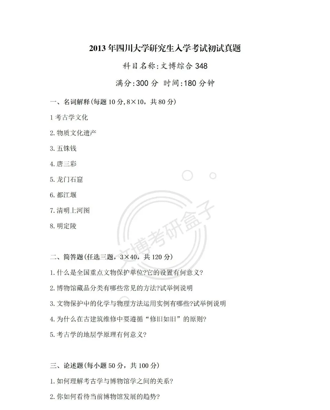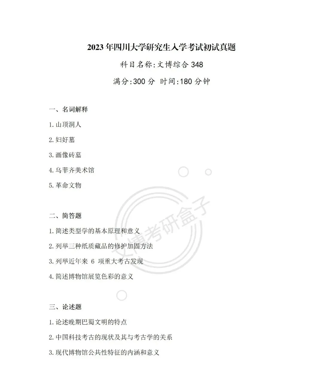 文博考研 | 2011—2026年四川大学『博物馆专业、文物专业真题合集』