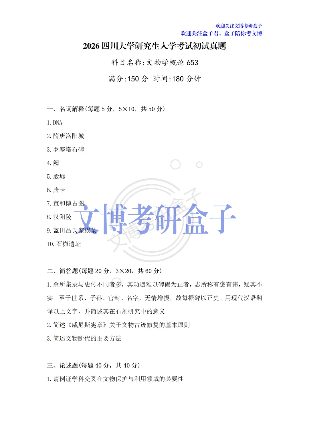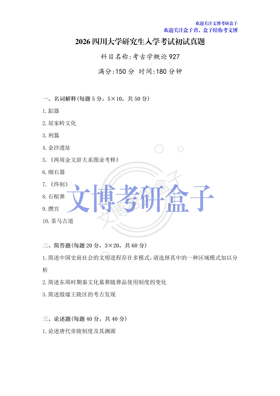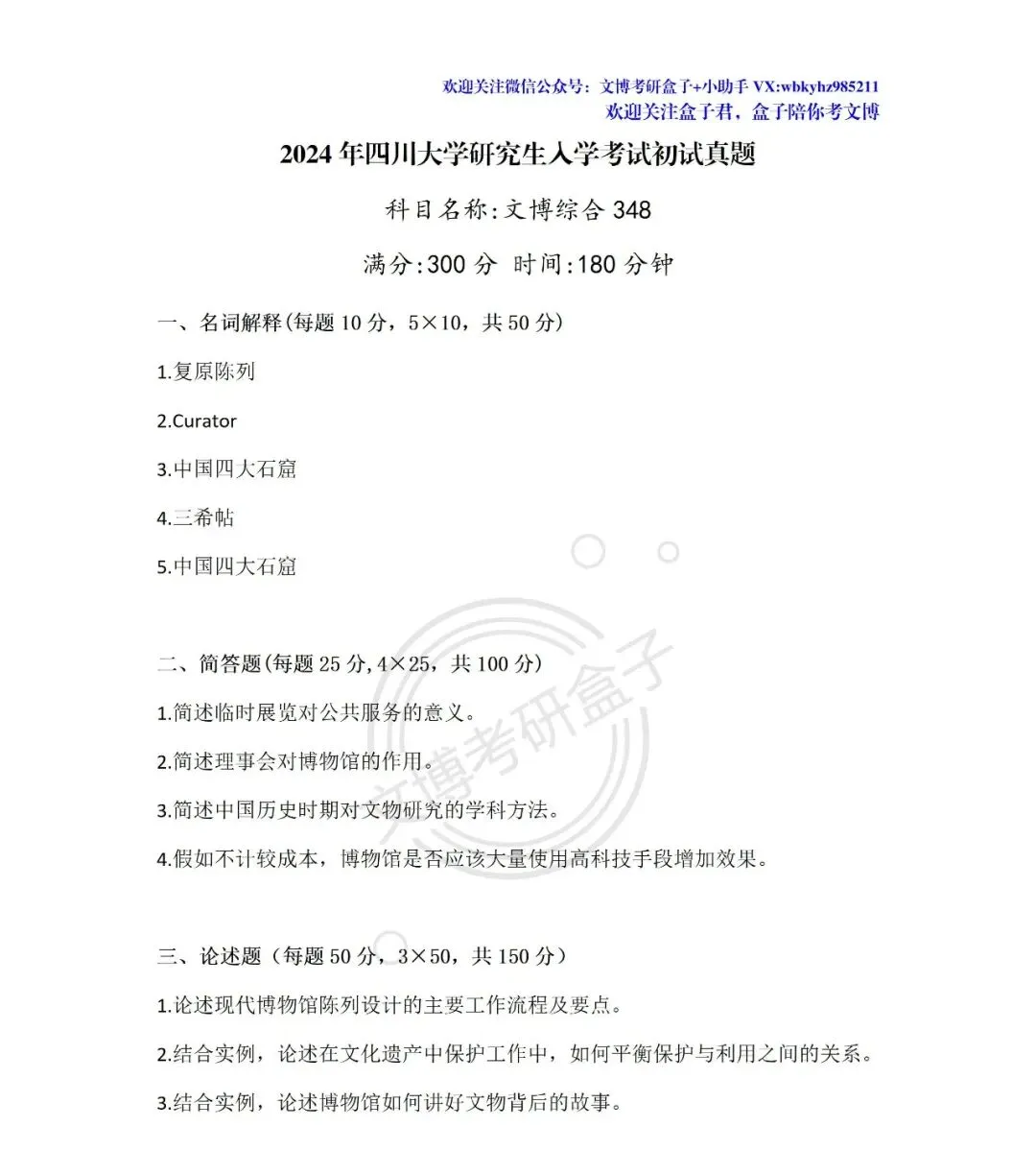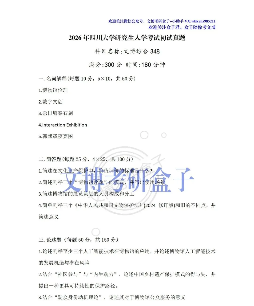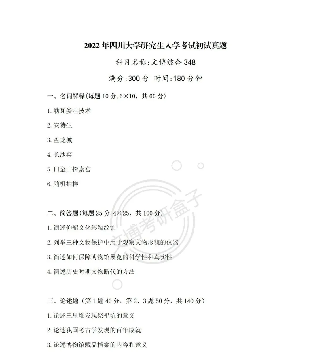 文博考研 | 2011—2026年四川大学『博物馆专业、文物专业真题合集』