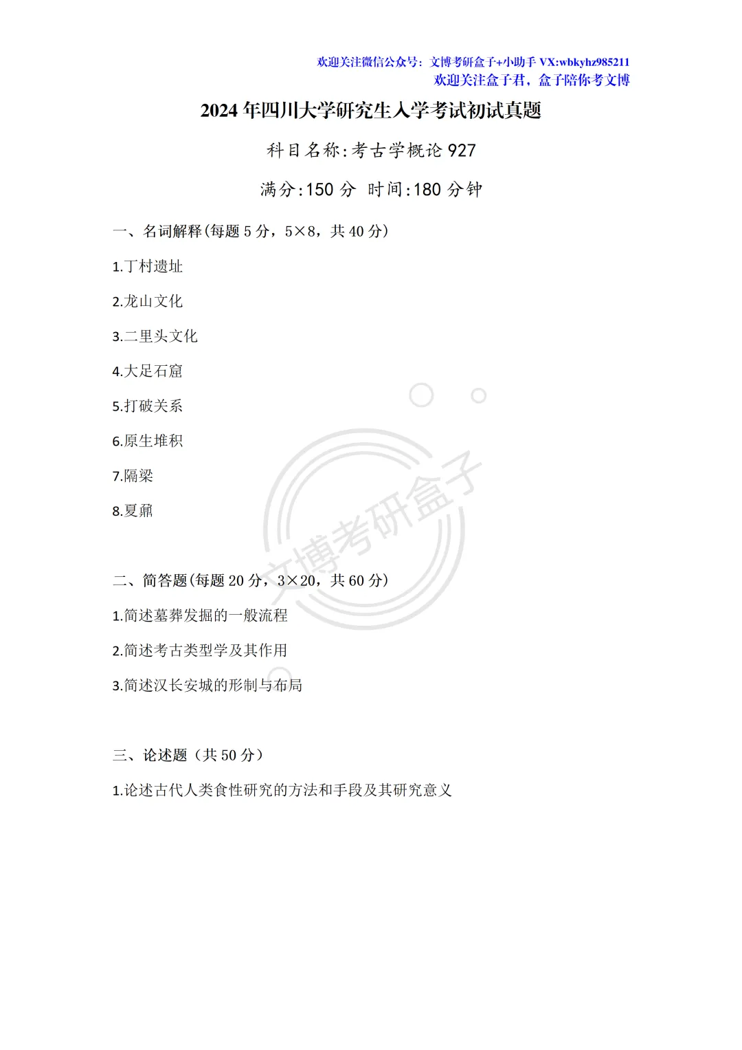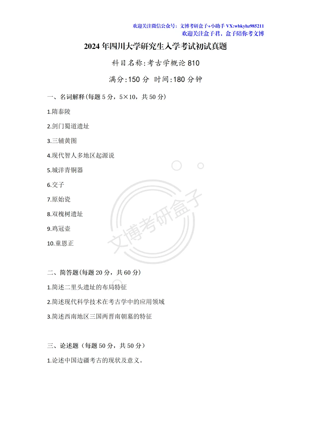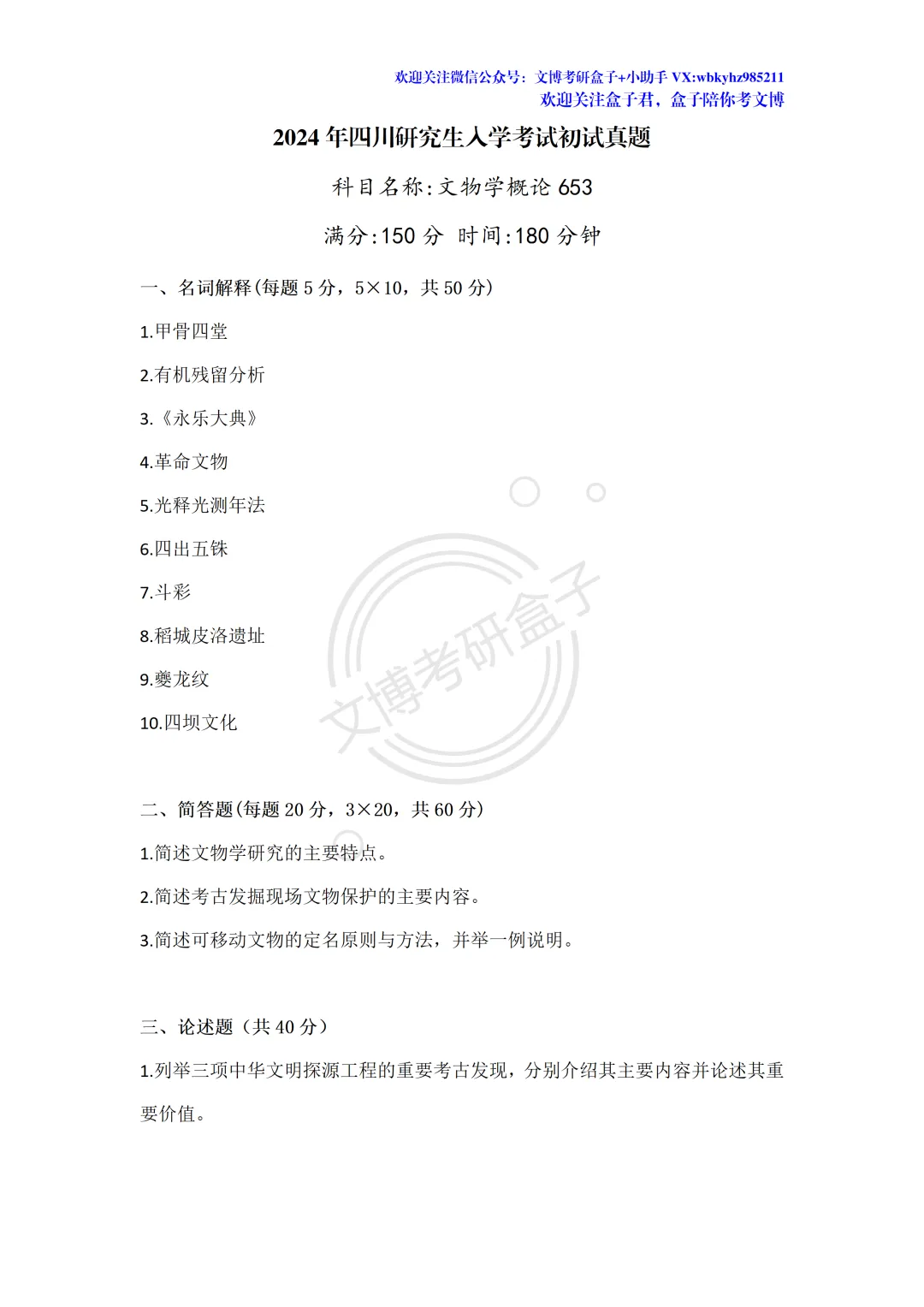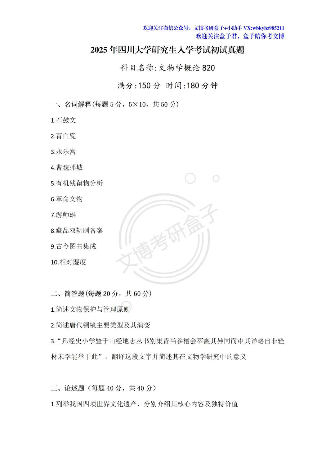 文博考研 | 2011—2026年四川大学『博物馆专业、文物专业真题合集』