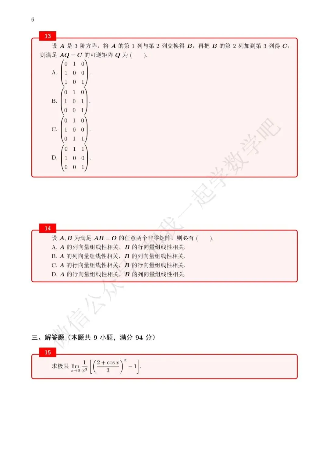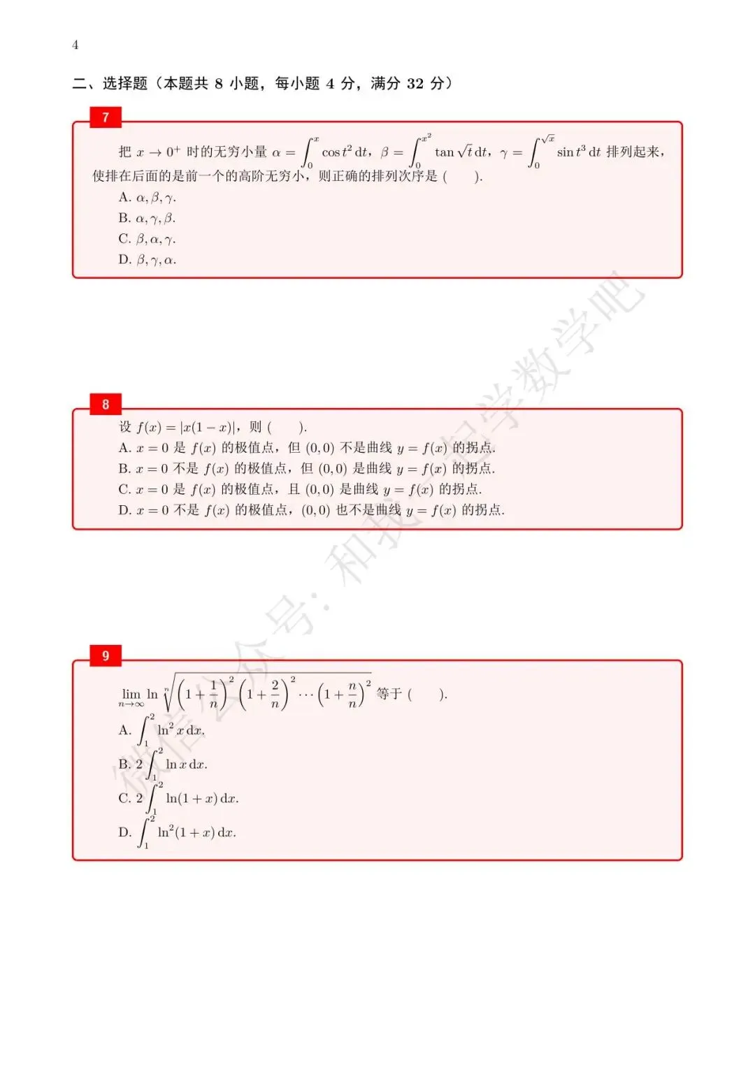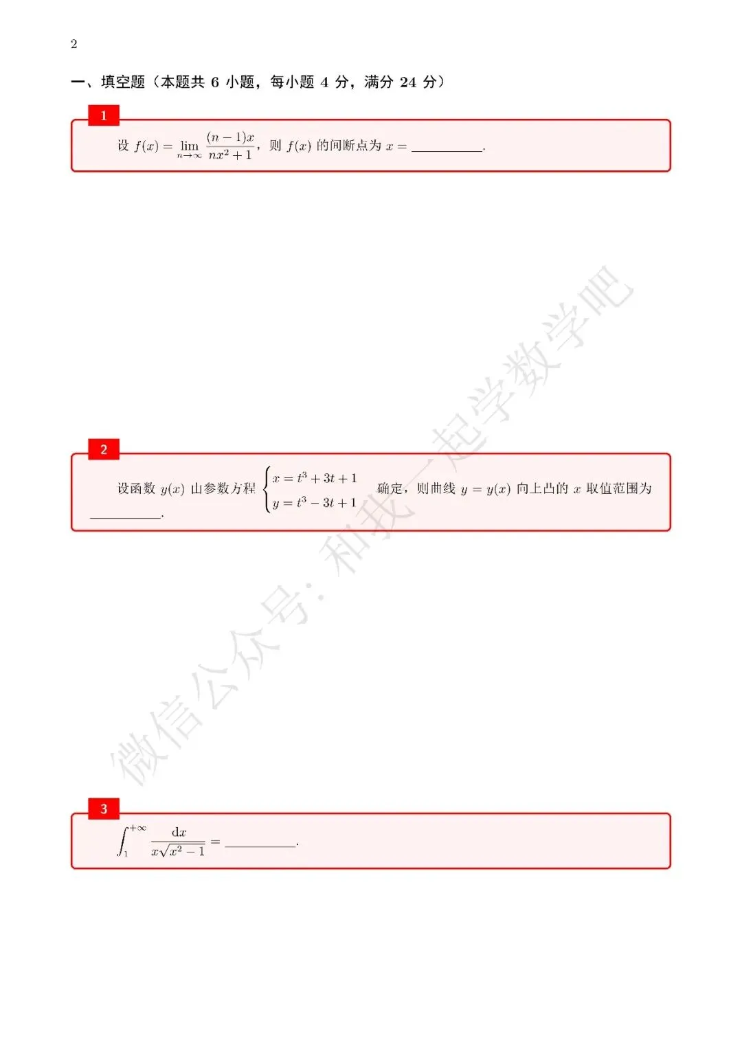 为了方便各位小伙伴们刷题,我重新排版了04年数二的真题,在每道题下面都增加了空白,方便大家写答案,记录相关知识点。