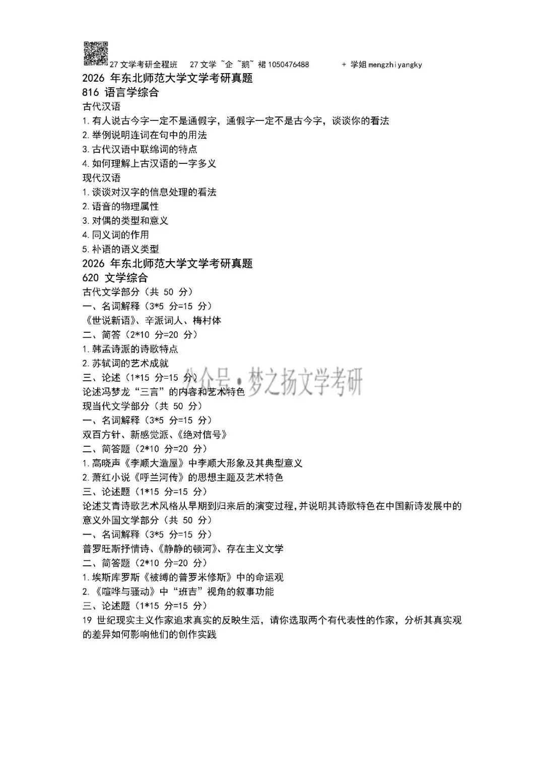 当前位置:首页>考研真题>真题回放|2026 年东北师范大学文学考研真题