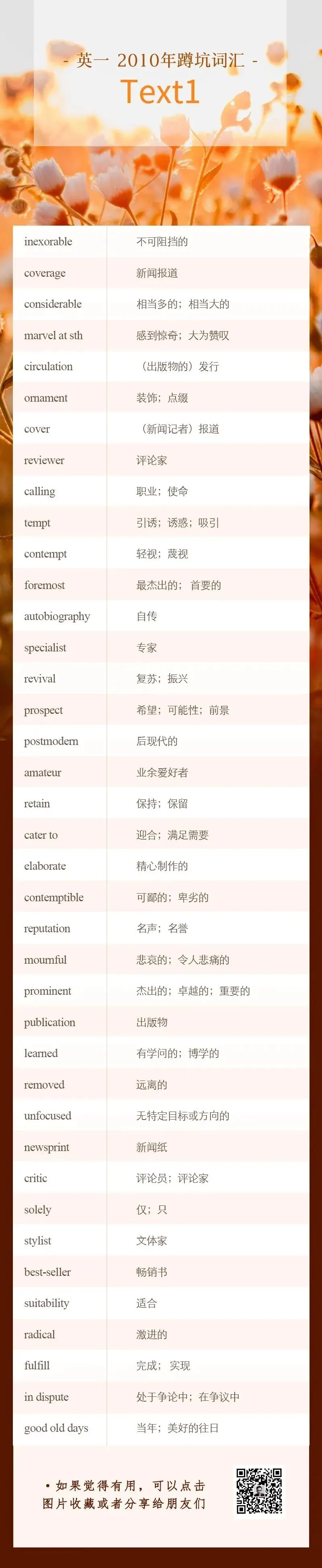 1、蹲坑词汇精选于近12年考研英语真题,你可以配合刷题进度,做到记单词和做真题两不误,无需花额外的时间去背词。2、蹲坑词汇同时可以作为词汇检测的工具。3-7月份大家使用的词汇书各不相同,有按主题、词频、字母分类的,大多数同学可能已经过了3-5遍,但你会发现尽管如此,在做真题的时候依旧会有不认识的单词。这是因为你之前都是按照规律记忆的,现在单词埋进真题里,打破了顺序、规律,你很难条件反射地想起来。所以在备考后期,按照真题年份记忆单词是一种重要的检测方式。考研真题必背词汇