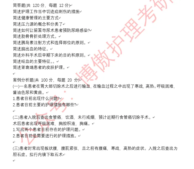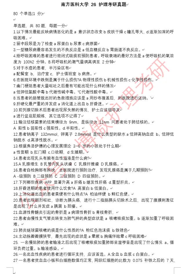 26护理考研真题回忆!南方医科大学!27考研有福啦~
