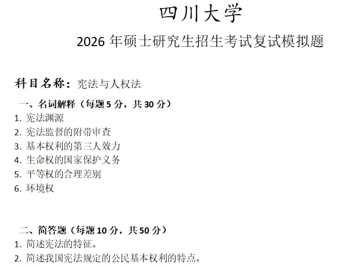 >四川大学宪法与人权法考研复试真题模拟