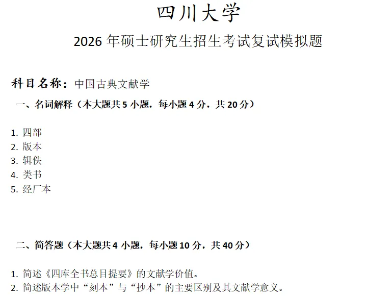 >四川大学中国古典文献学考研复试真题模拟
