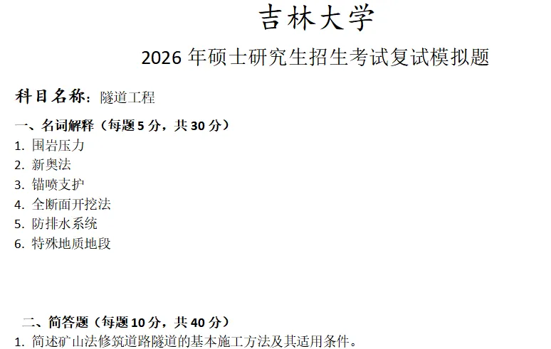 吉林大学隧道工程考研复试真题模拟含答案