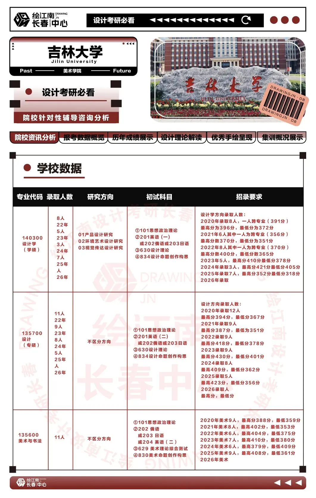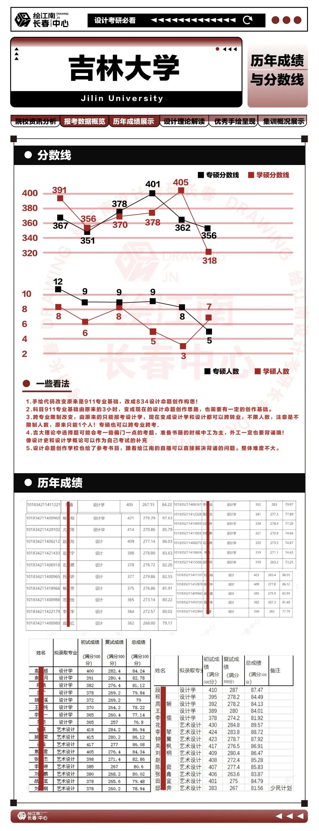 吉林大学-专硕覆盖135分、学硕覆盖140分丨638/630设计史论大面积命中