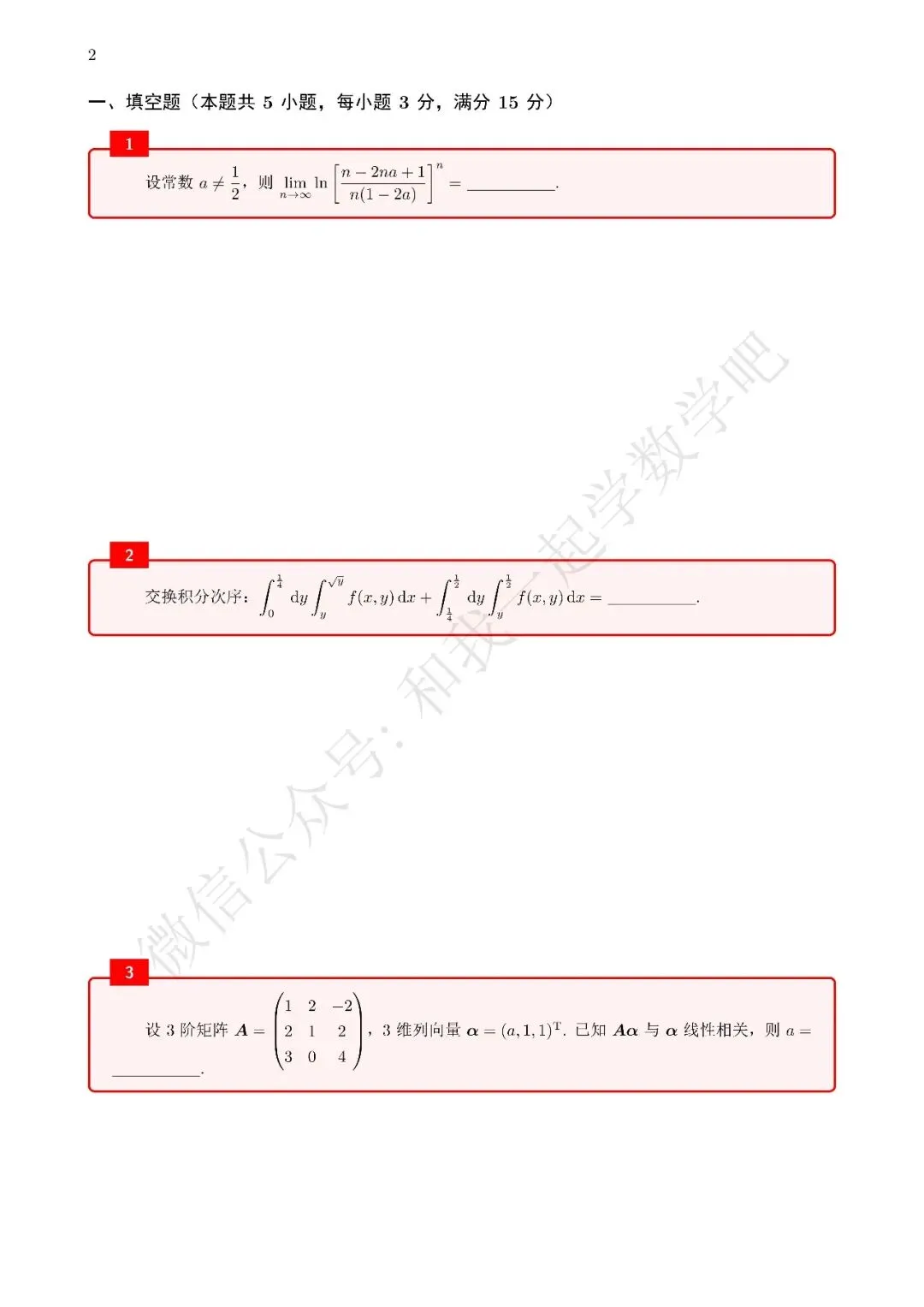 为了方便各位小伙伴们刷题,我重新排版了02年数三的真题,在每道题下面都增加了空白,方便大家写答案,记录相关知识点。