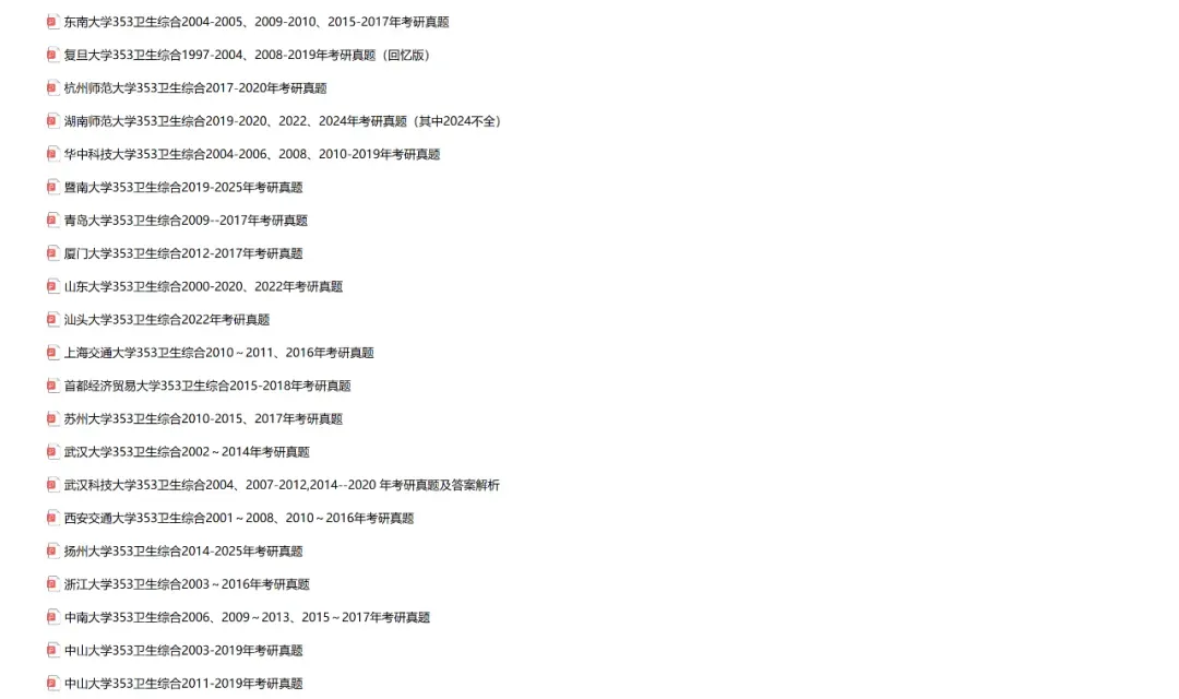 复旦大学353卫生综合1997-2004、2008-2019年考研真题(回忆版)