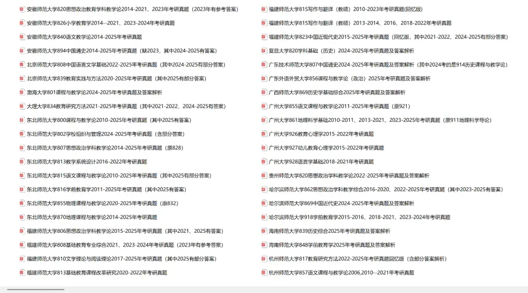 湖南师范大学843小学课程与教学2011-2017、2019-2025年考研真题(原955课程与教学论,其中2025有部分答案)