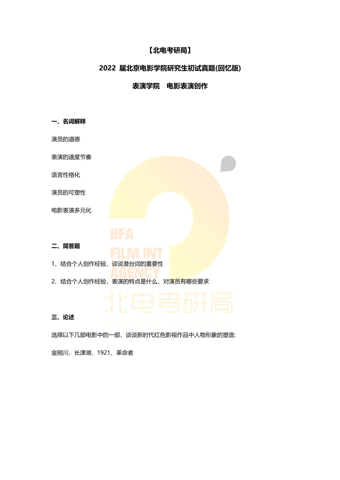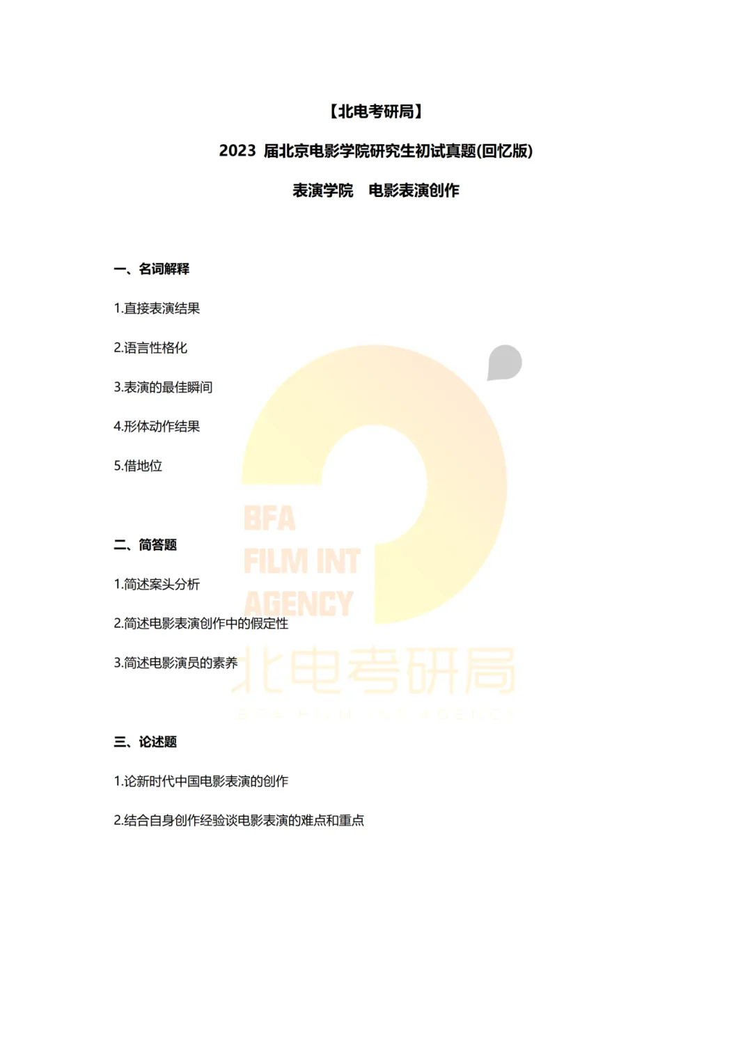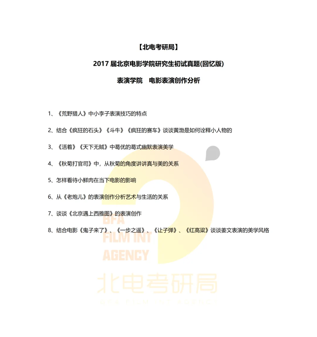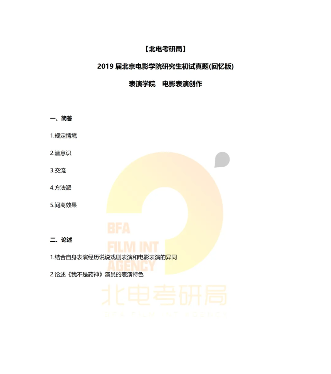 真题档案 | 北电考研表演学院—电影表演创作近十年真题汇总!