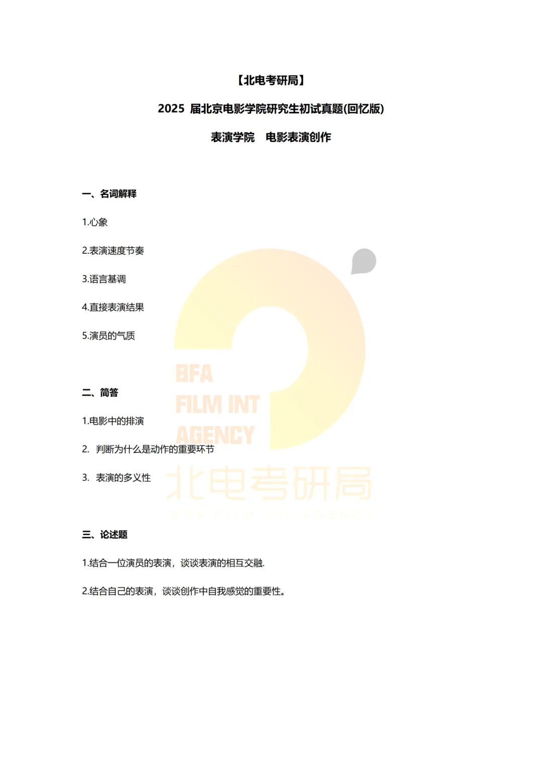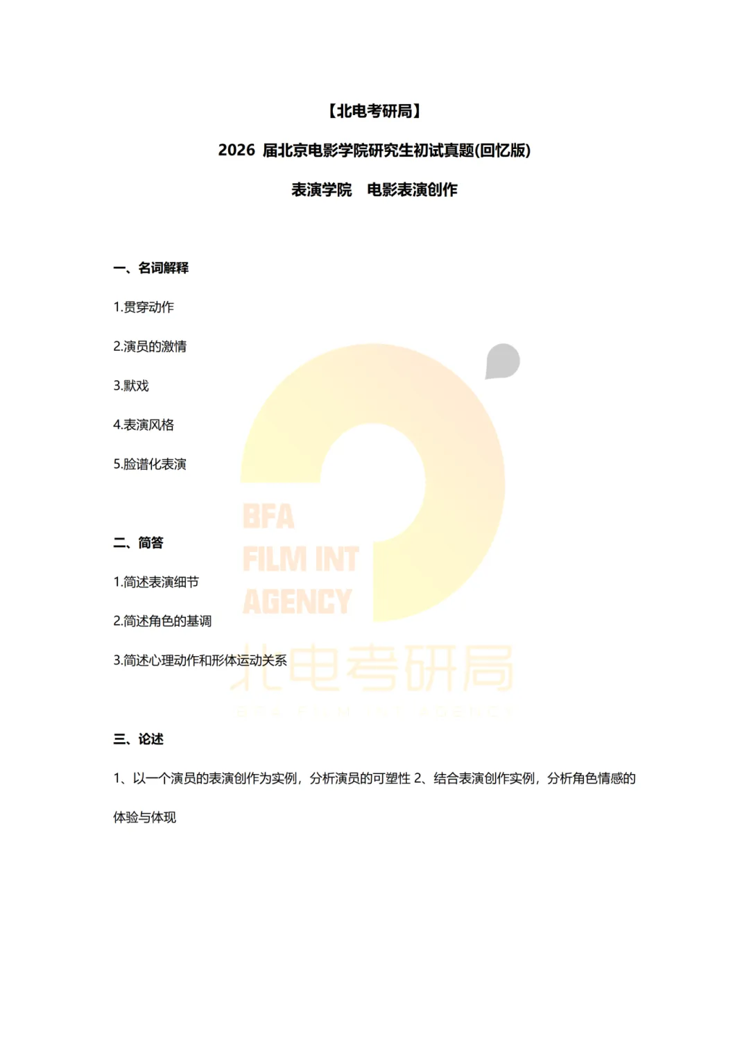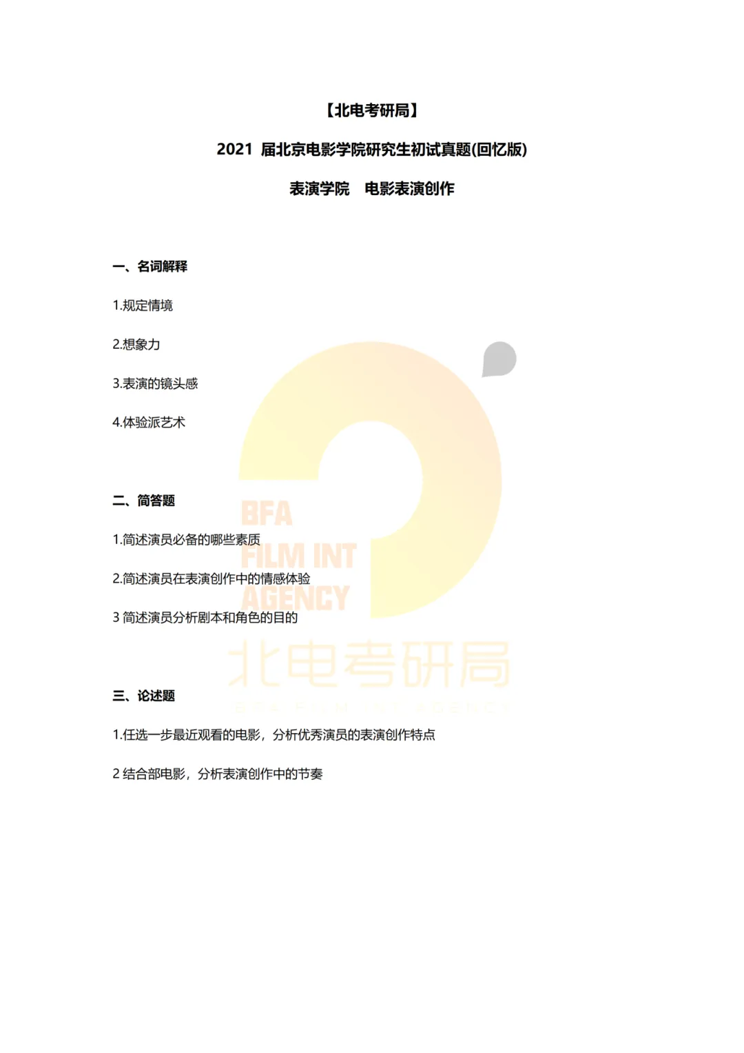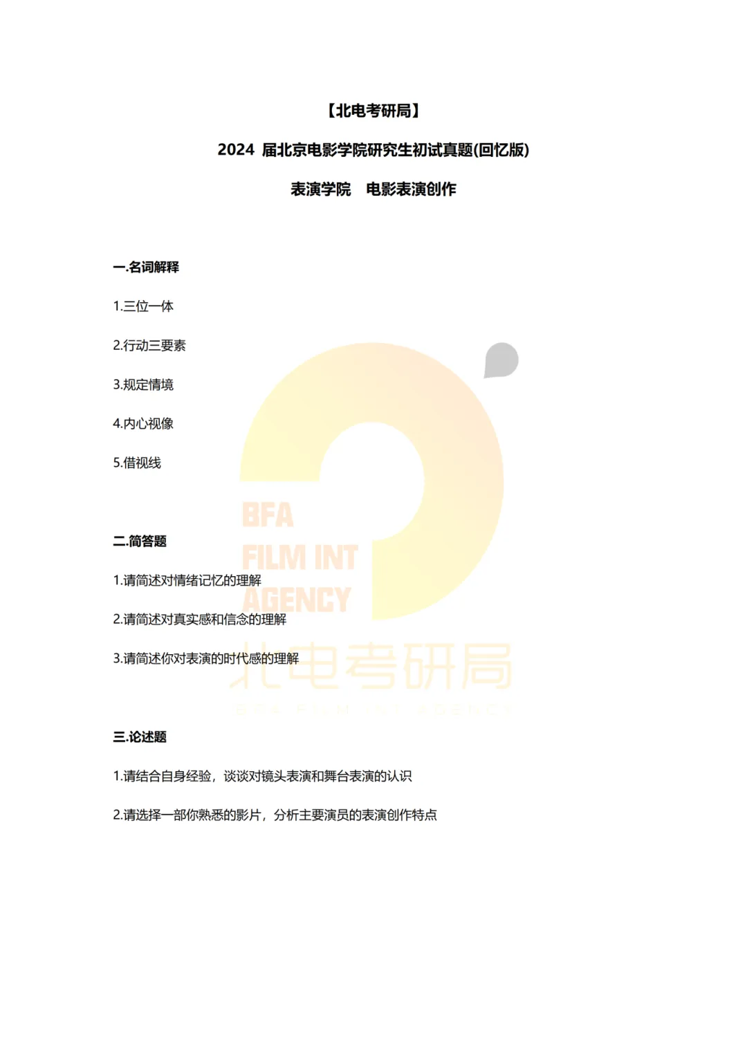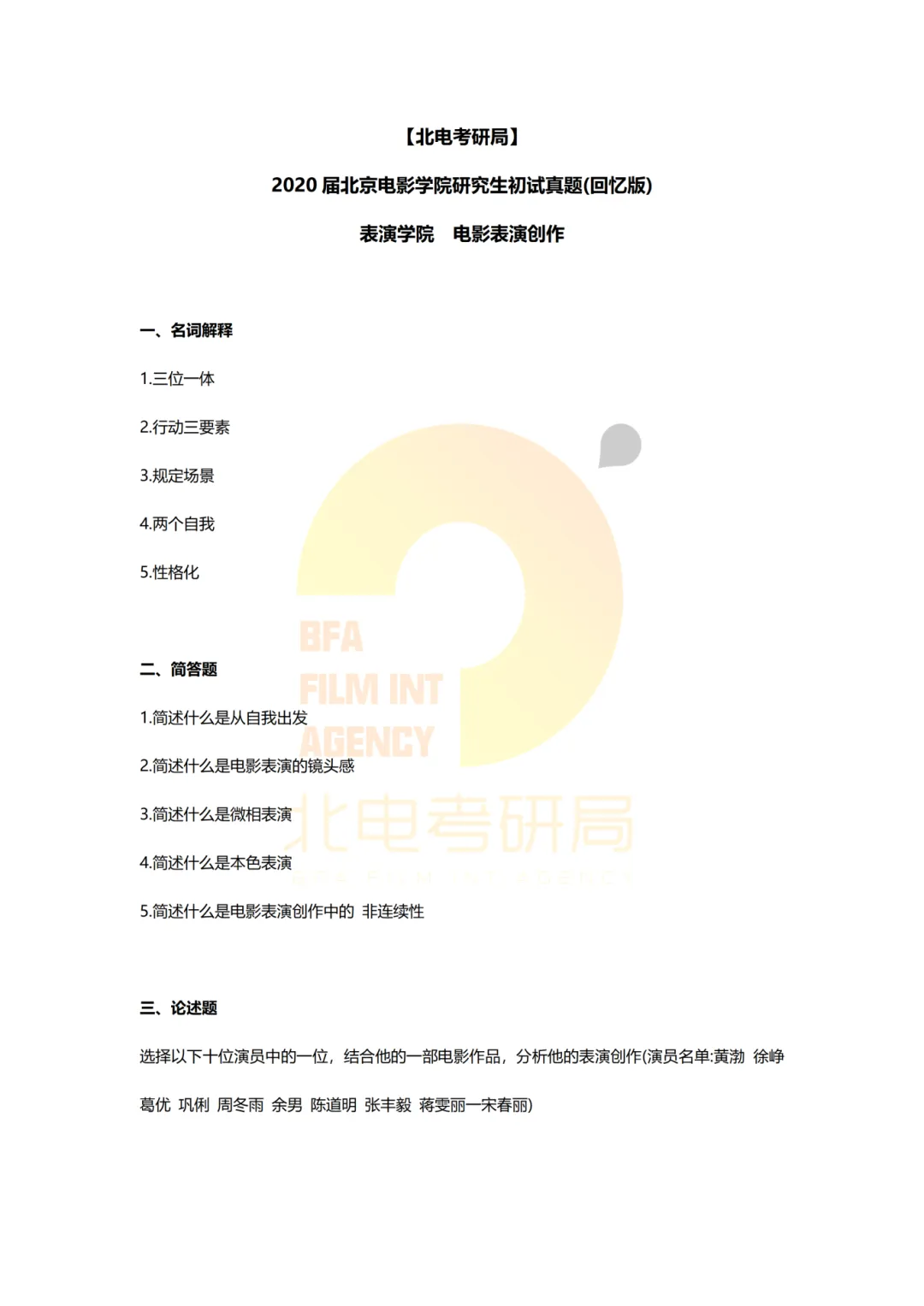真题档案 | 北电考研表演学院—电影表演创作近十年真题汇总!