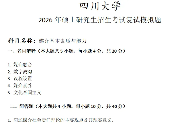 >四川大学媒介基本素质与能力考研复试真题模拟