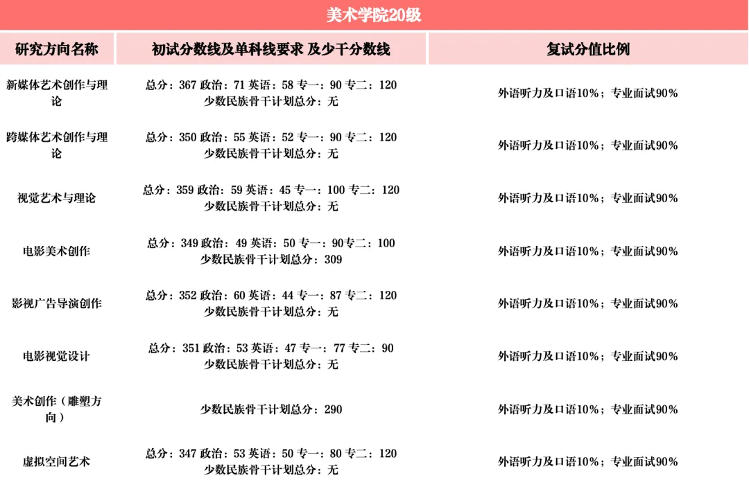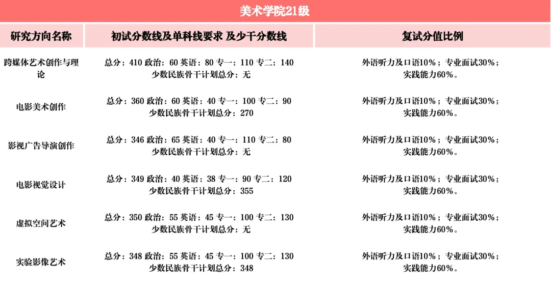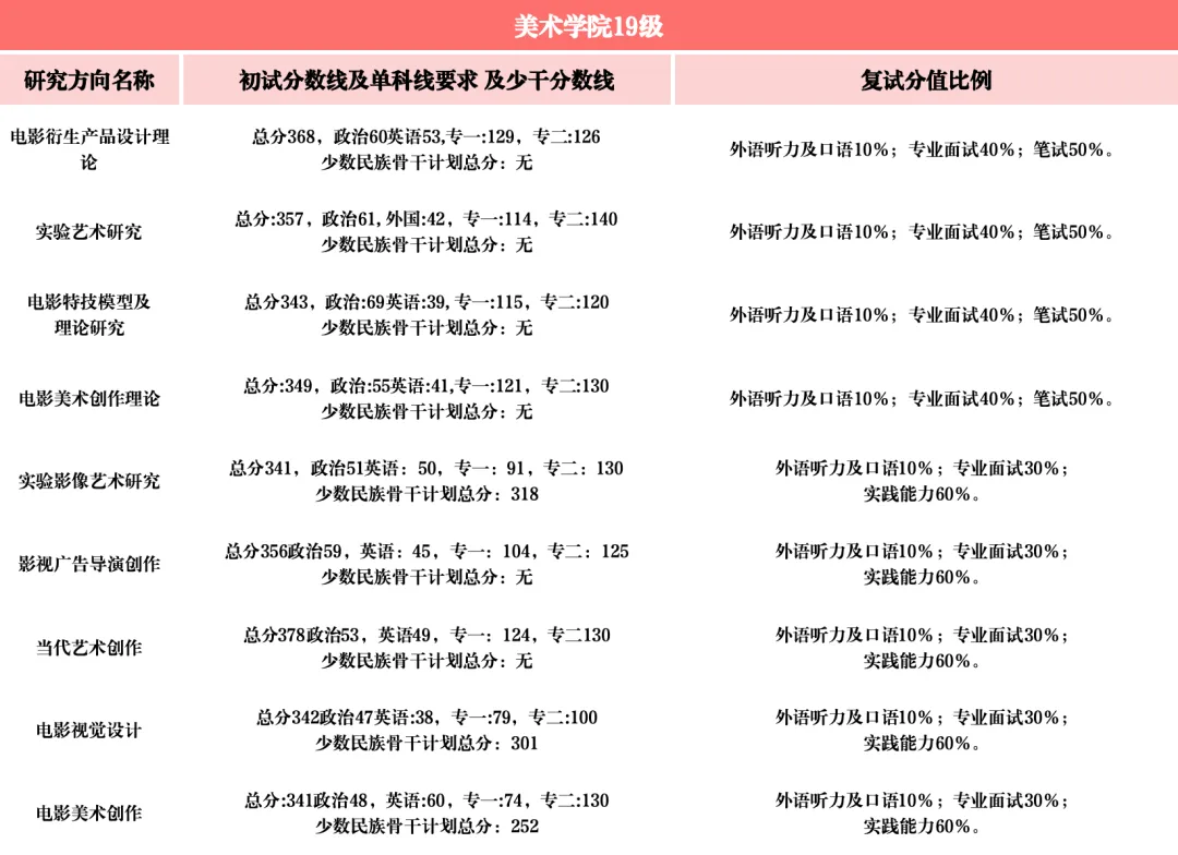 电影美术创作方向是美术学院的核心学科专业方向,具有“电影”、“美术”、“设计”等跨学科研究脉络与实践历史。是全面认知电影造型,研究电影制作工艺的主要门径之一。考生需熟练掌握AutoCAD、Photoshop、SketchUp等制图和建模软件,会使用midjourney等AI工作流。