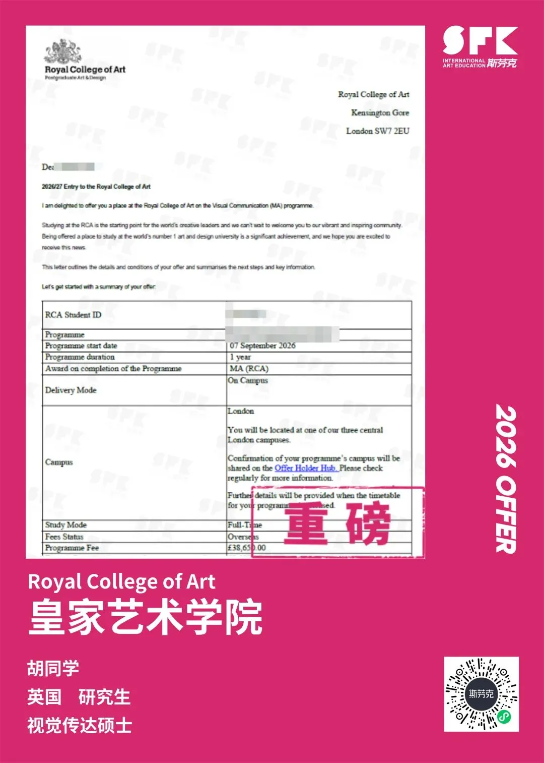 提到皇家艺术学院最难录取的专业之一,视觉传达(Visual Communication)绝对算其中之一,每年录取率不足15%,对申请者创意思维、跨学科能力以及作品集要求极高。