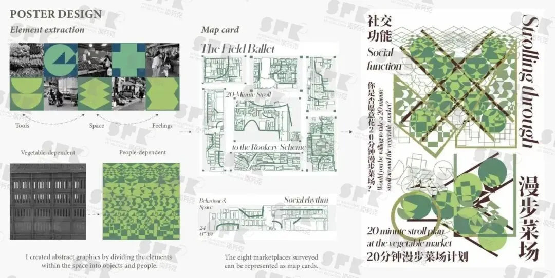 这是我最喜欢的项目之一,是从西安的一个菜场视角切入,通过我的设计让人与环境有了交互,最后再回归到菜场本身。