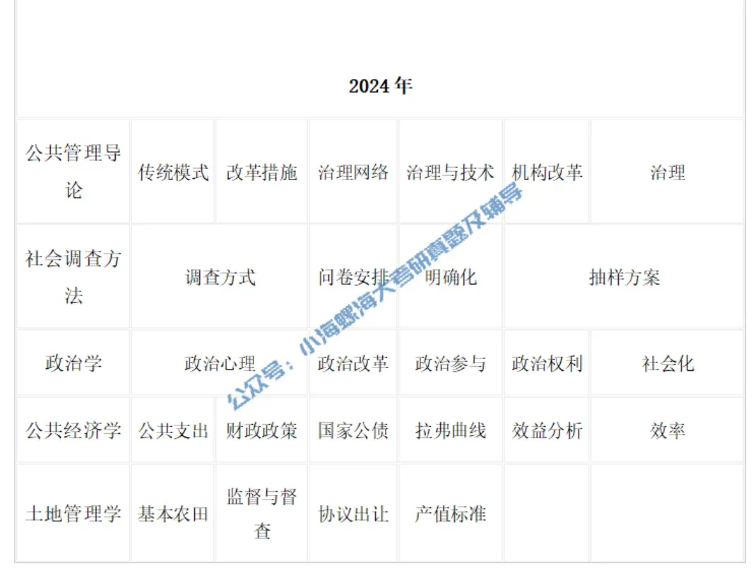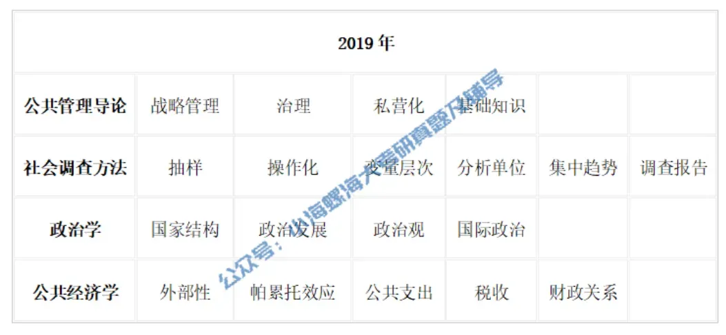 公共管理导论:考察比较灵活,会结合学术热点与时事进行考察,但主要知识点包括“治理”、“政府改革”、“基础理论”等,因此备考需要把握重要基础理论以及关注热点。