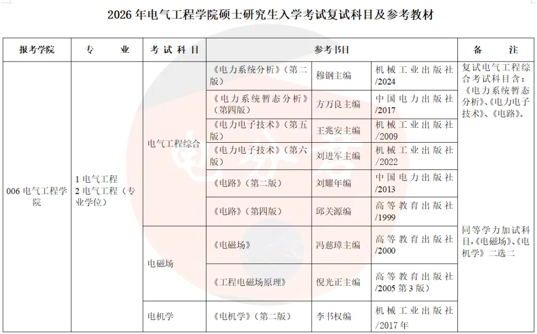 2、电气学硕、电气专硕、非全日制26初试考察科目一致,均为数一英一+831电力系统分析;
