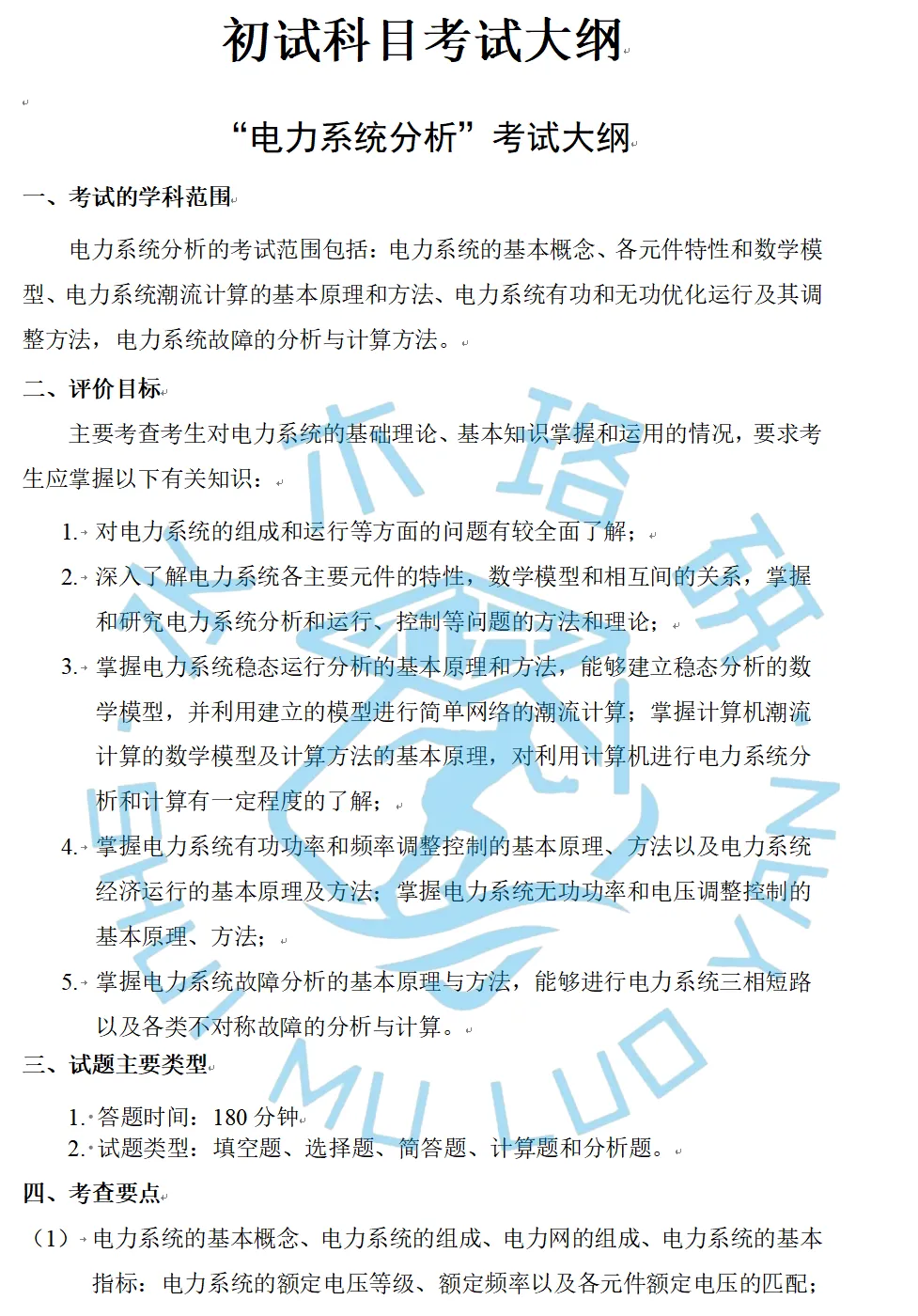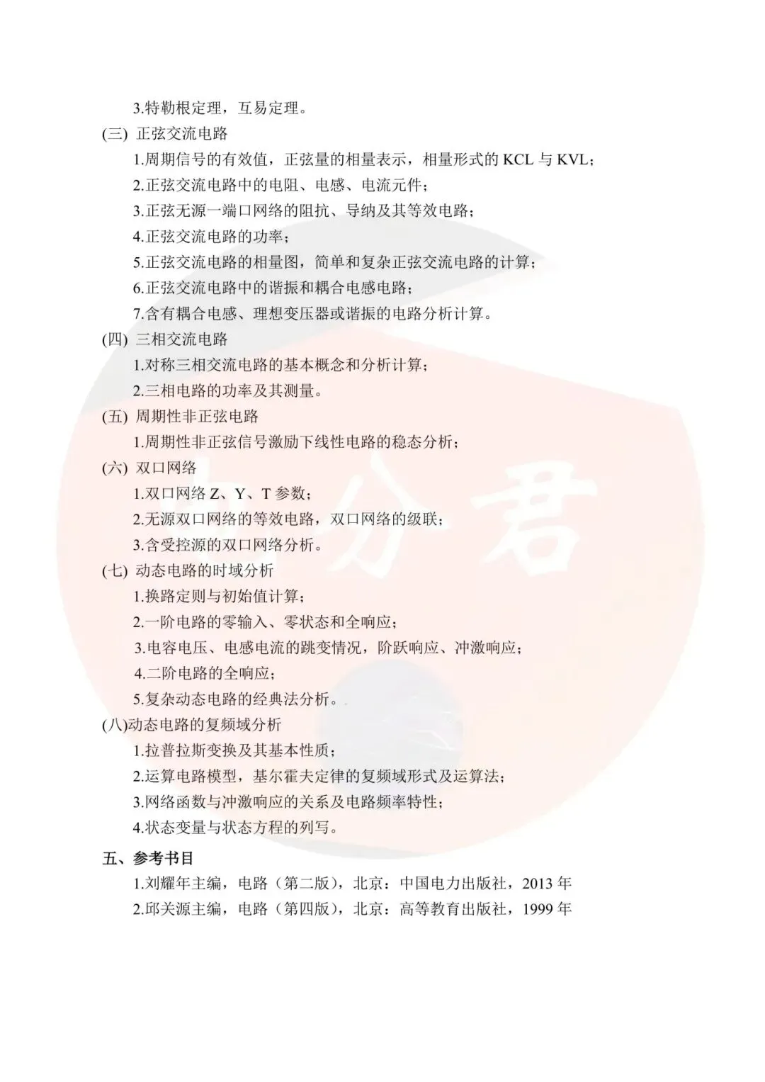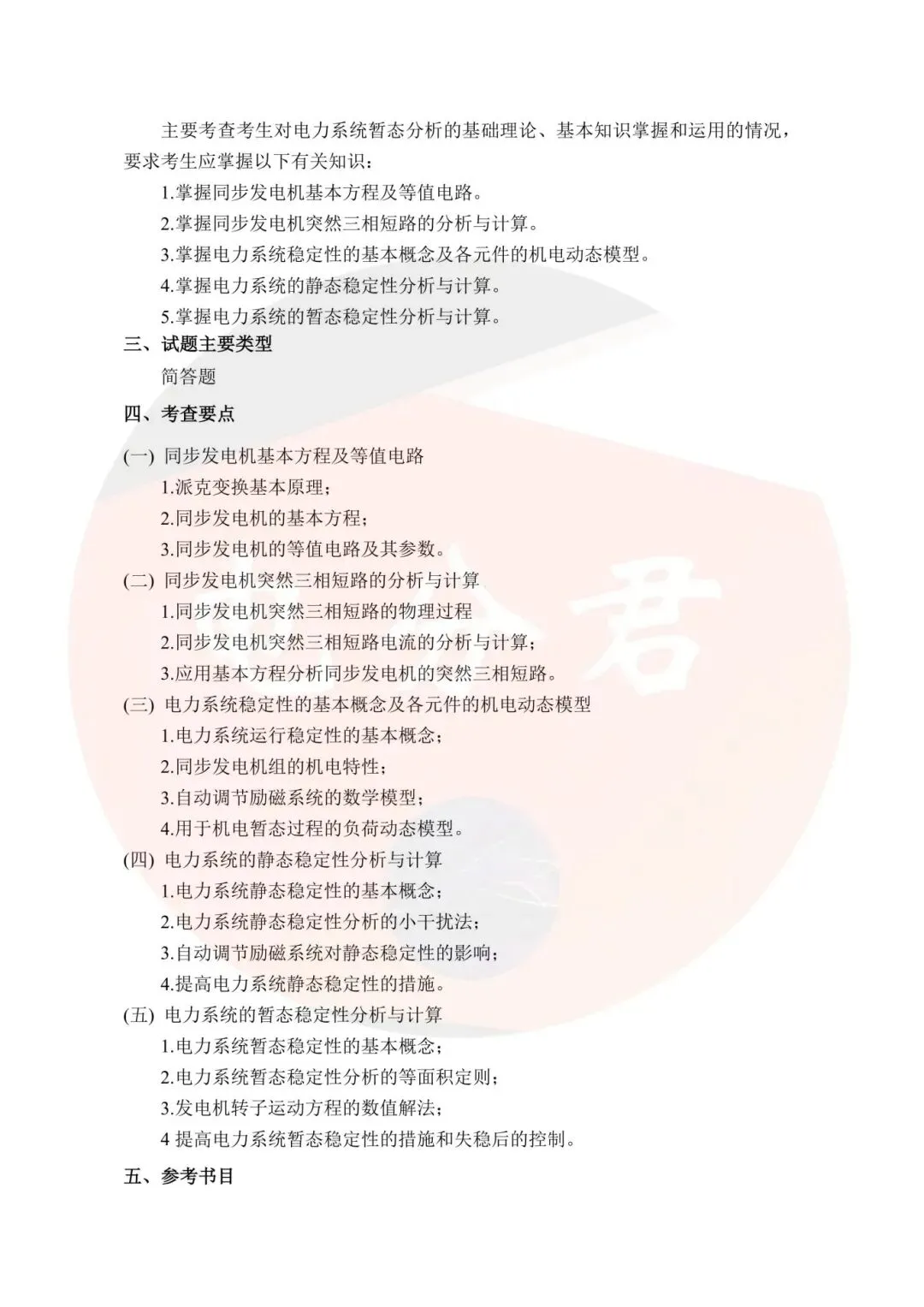 专业课考纲变动:初试考纲部分减少了同步发电机的三相突然短路、同步发电机的基本方程、机电暂态部分(电力系统稳定性概述、电力系统的静态稳定性分析、电力系统的暂态稳定性分析),但增加了不对称故障部分对非全相运行计算的考察。