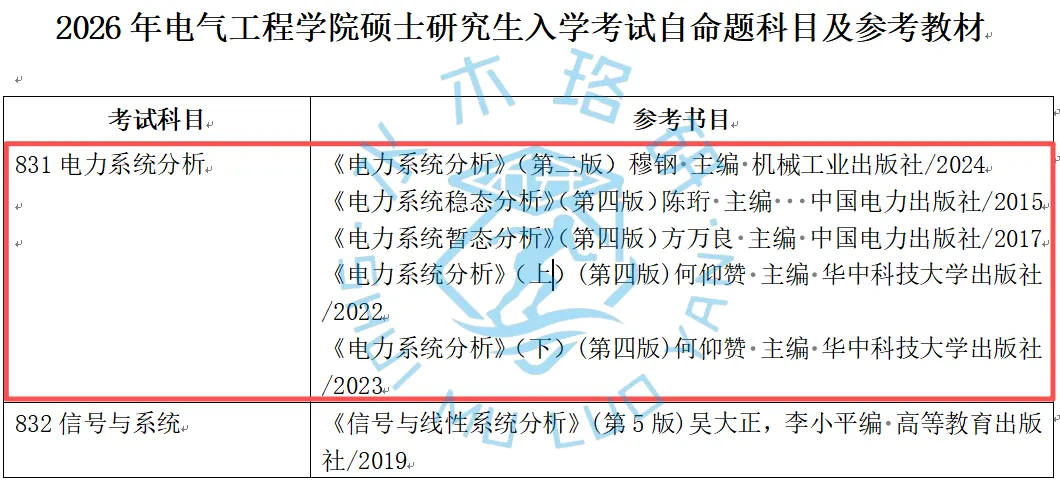 3、专业课参考教材变动:在831电力系统分析的参考书目中,穆钢主编的《电力系统分析》不仅排序被提升至首位,其指定版本也更新至第二版。这释放出明确信号,说明该书已成为初试科目最首要的复习依据,请考生务必采用最新版本备考。