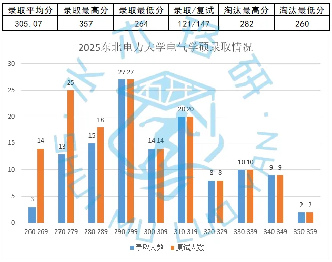 25电气学硕复试线260分,一志愿进入复试147人,拟录取121人,复录比1.21:1!其中,录取最高分357分,录取最低分264分,淘汰最高分282分,淘汰最低分260分,录取平均分305.07分。