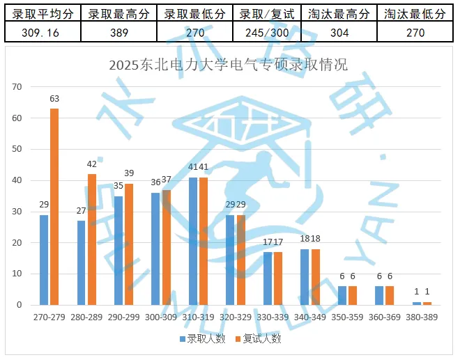 25电气专硕复试线270分,进入复试300人,拟录取245人,复录比1.22:1!其中,录取最高分389分,录取最低分270分,淘汰最高分304分,淘汰最低分270分,录取平均分309.16分。