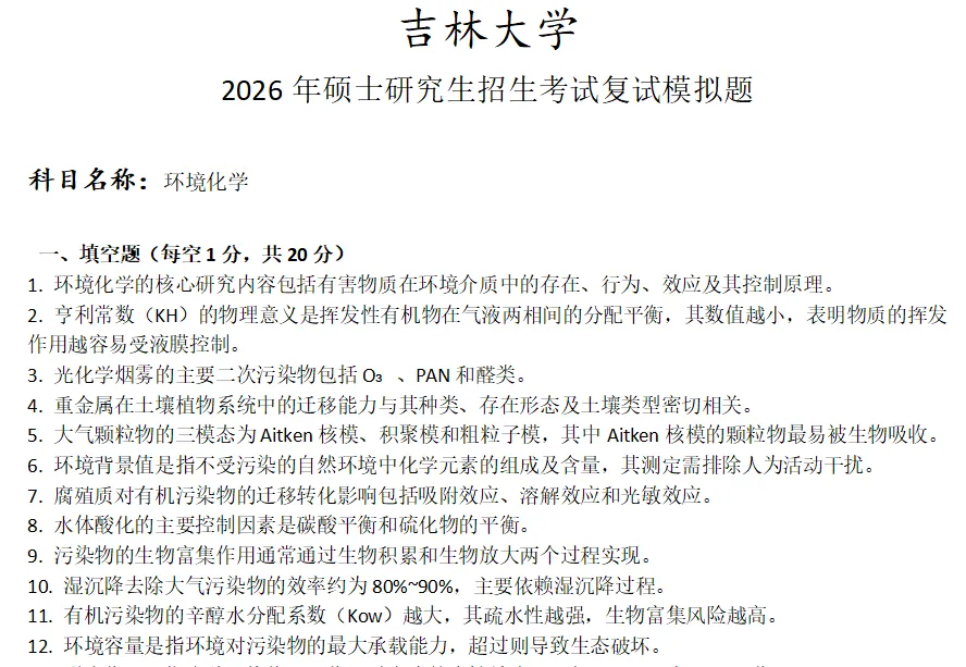 吉林大学环境化学考研复试真题模拟含答案
