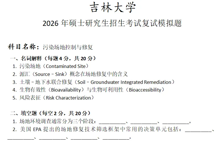 吉林大学污染场地控制与修复考研复试真题模拟含答案