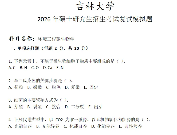 吉林大学环境工程微生物学考研复试真题模拟含答案