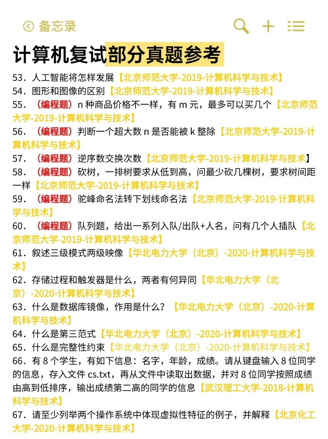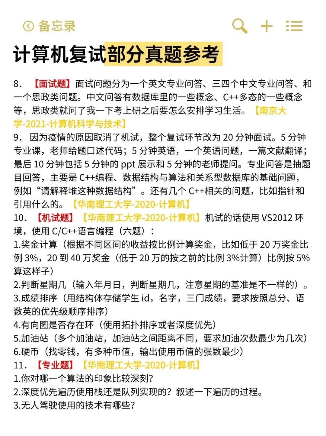 今天为大家整理了一批计算机考研复试的精选真题,覆盖多所高校近年来的笔试、机试与面试题目。