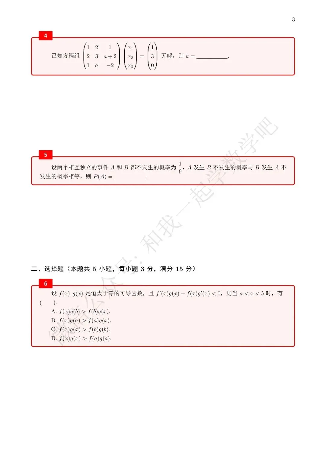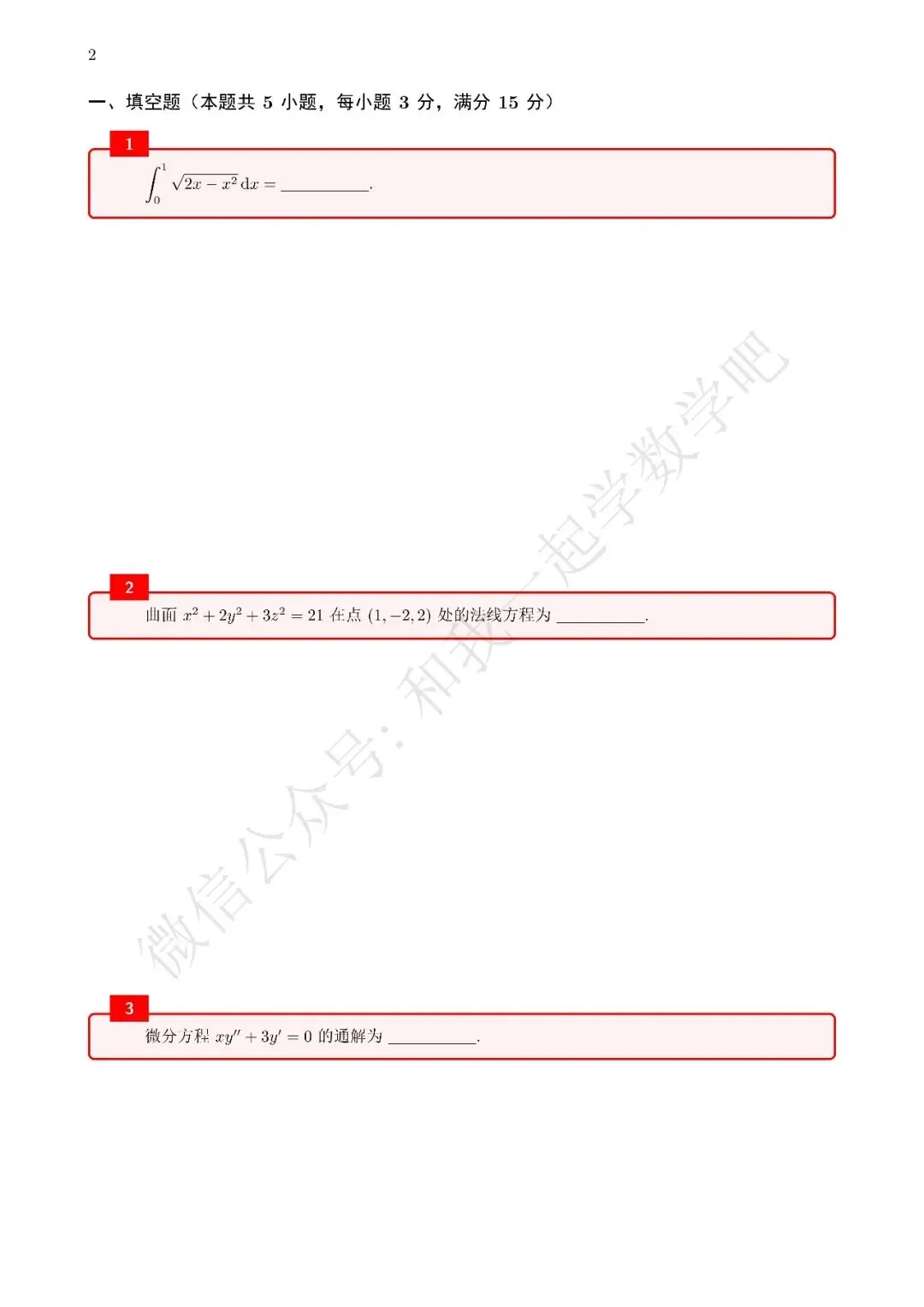 为了方便各位小伙伴们刷题,我重新排版了00年数一的真题,在每道题下面都增加了空白,方便大家写答案,记录相关知识点。