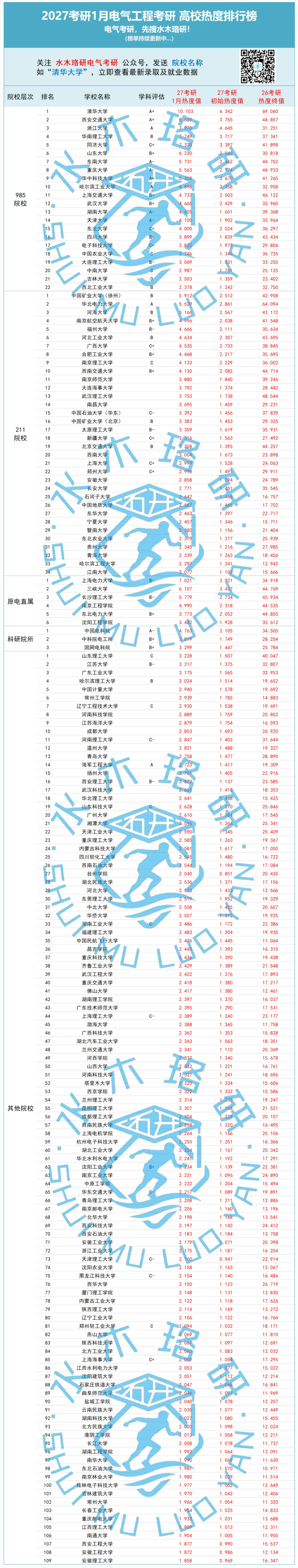 为了给26电气考生参考,给27电气考生择校指路,水木珞研教务团队加班加点,深度复盘最新考情、真题与数据,全国电气工程考研院校《2026电气工程考研专业课难度排行榜》正式发布!