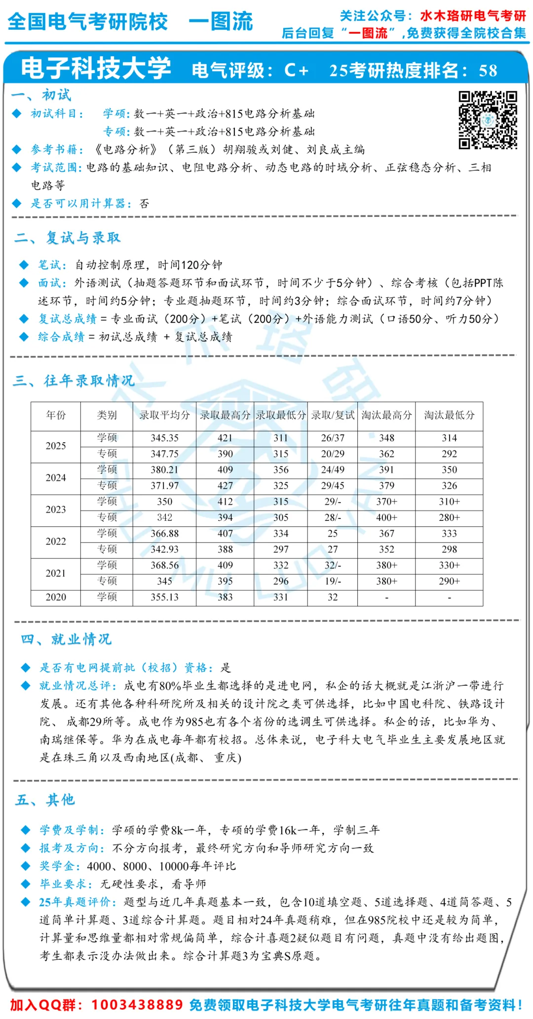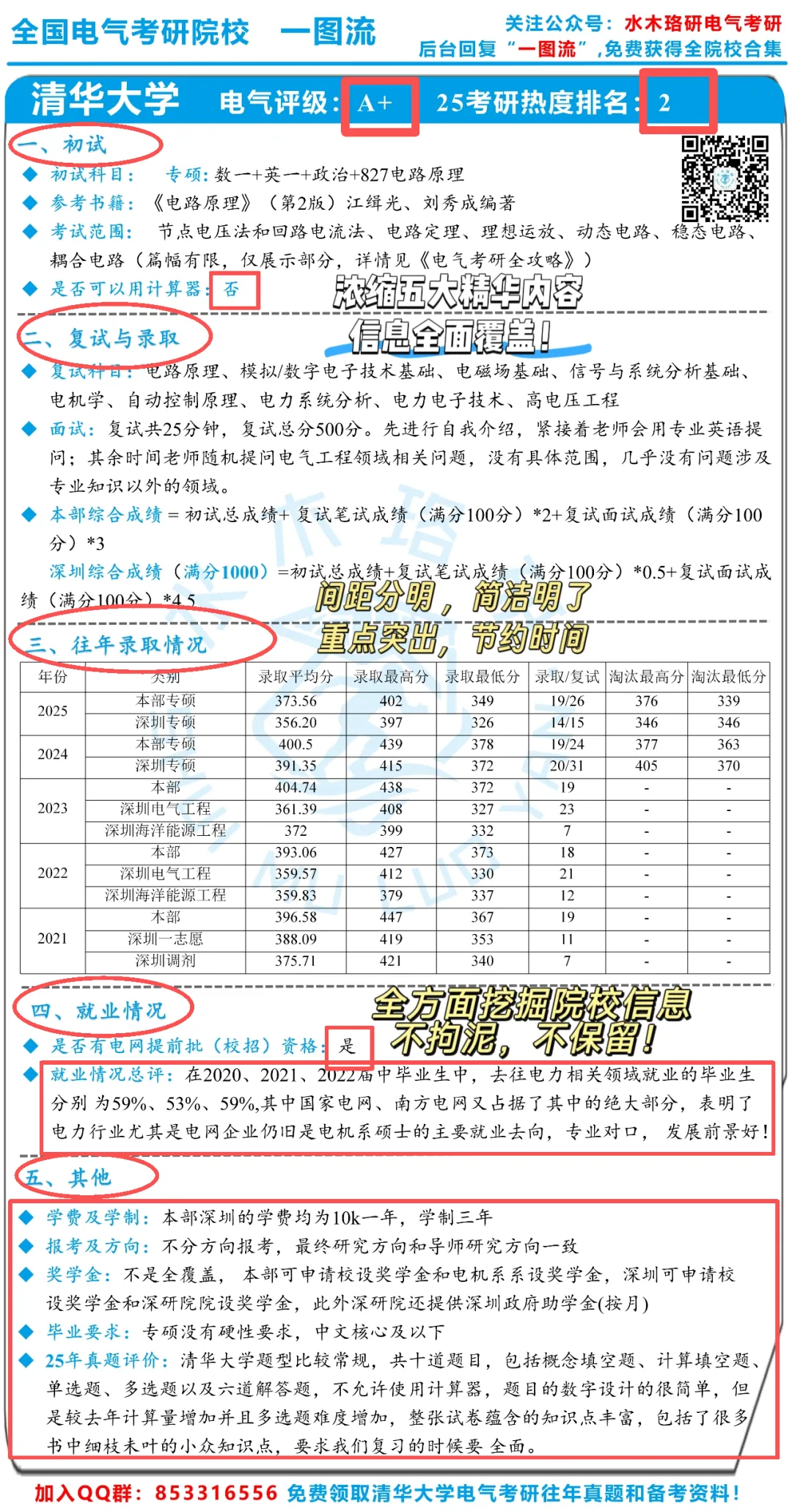 全国电气考研院校《一图流》让你通过一张图全面了解一所院校,提供你想要知道的各种电气考研资讯。“一图”详细说明了院校初试、复试及录取、往年录取信息、就业信息四大择校重点,更包含了能否使用计算器、院校的学费、奖学金、毕业要求等关键信息,让你能轻松对比不同院校之间的区别,告别电气考研择校难题!