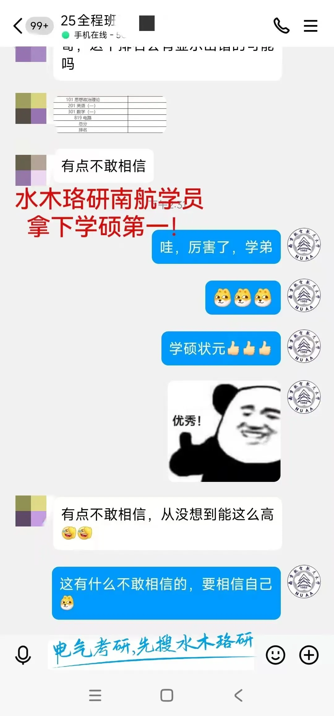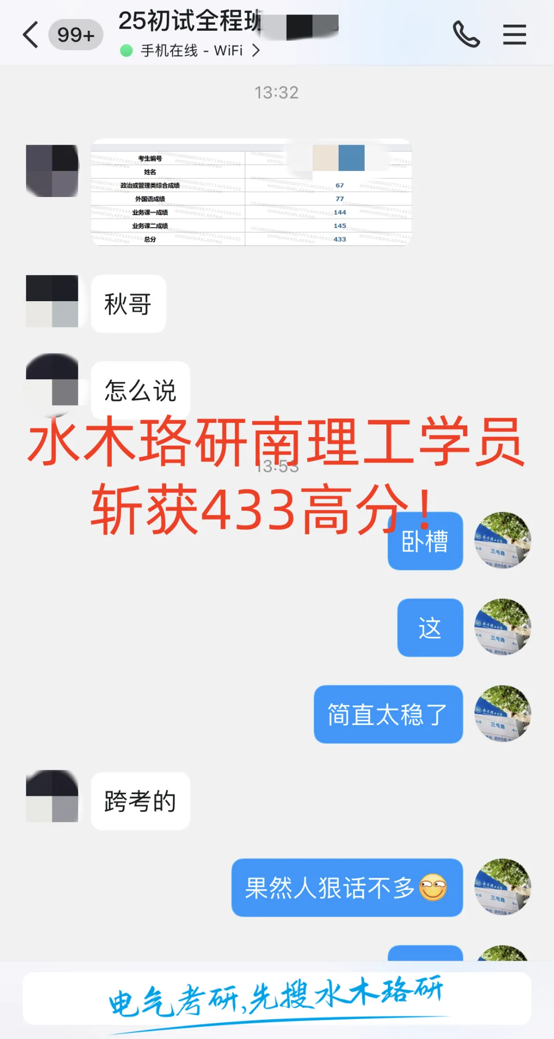 水木珞研全程班学员桃李满天下,考研成绩制霸全国,初试全程班学员身份标注清晰、一一可查,高分成绩及口碑从不自甘堕落混淆视听!