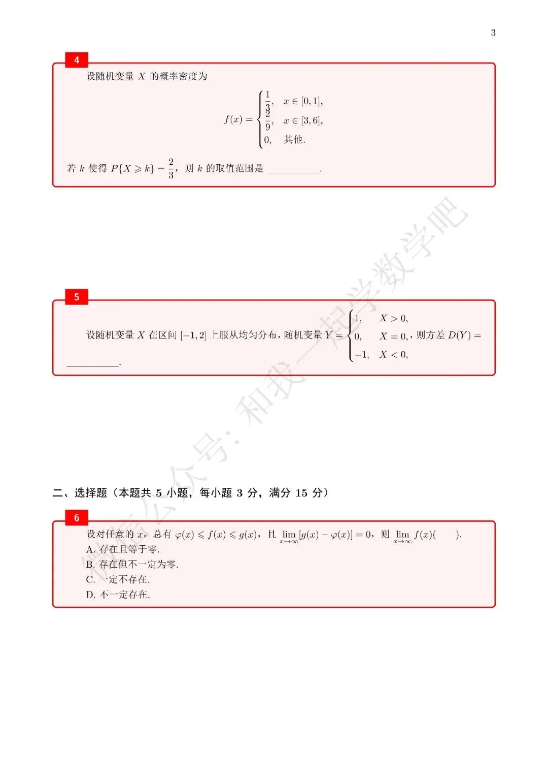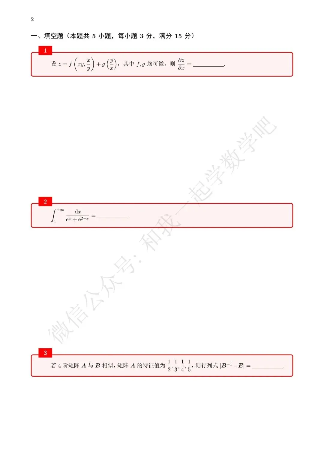 为了方便各位小伙伴们刷题,我重新排版了00年数三的真题,在每道题下面都增加了空白,方便大家写答案,记录相关知识点。