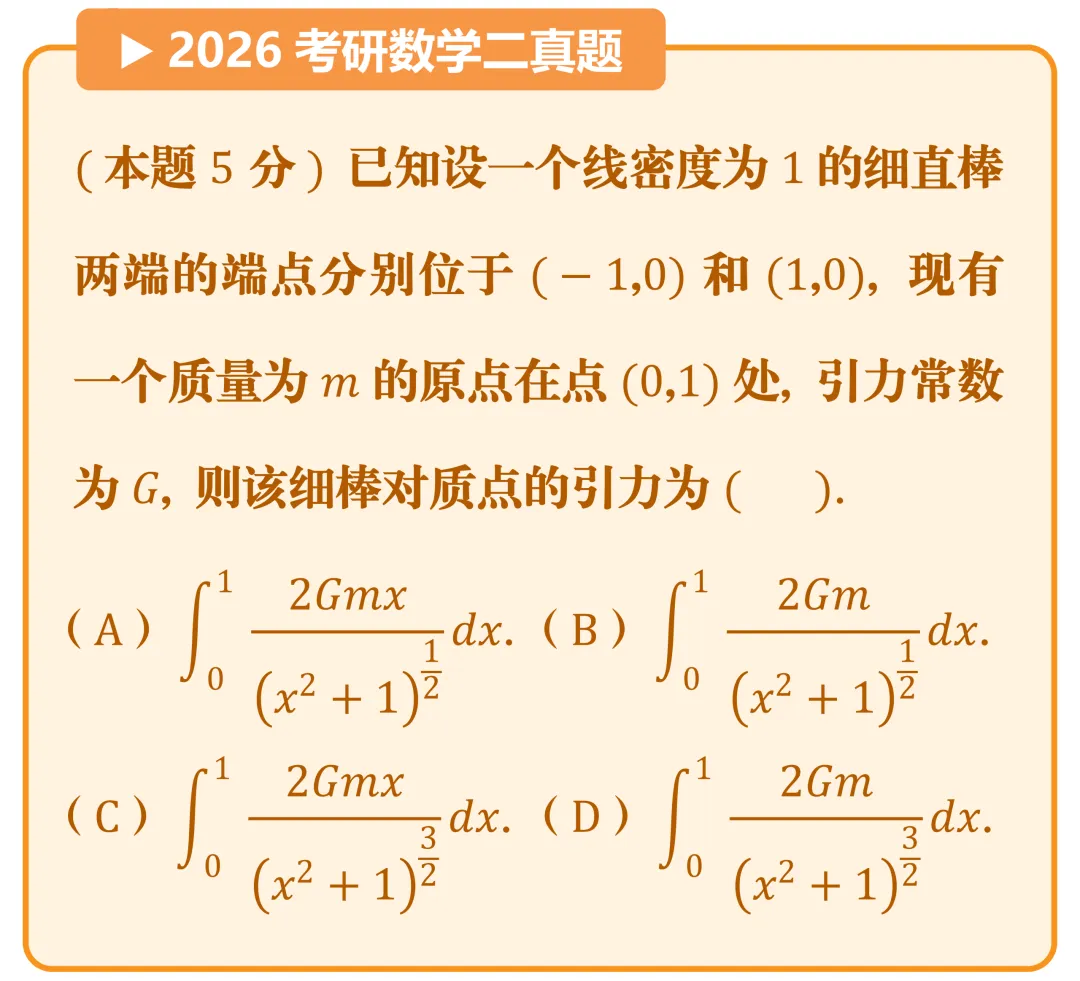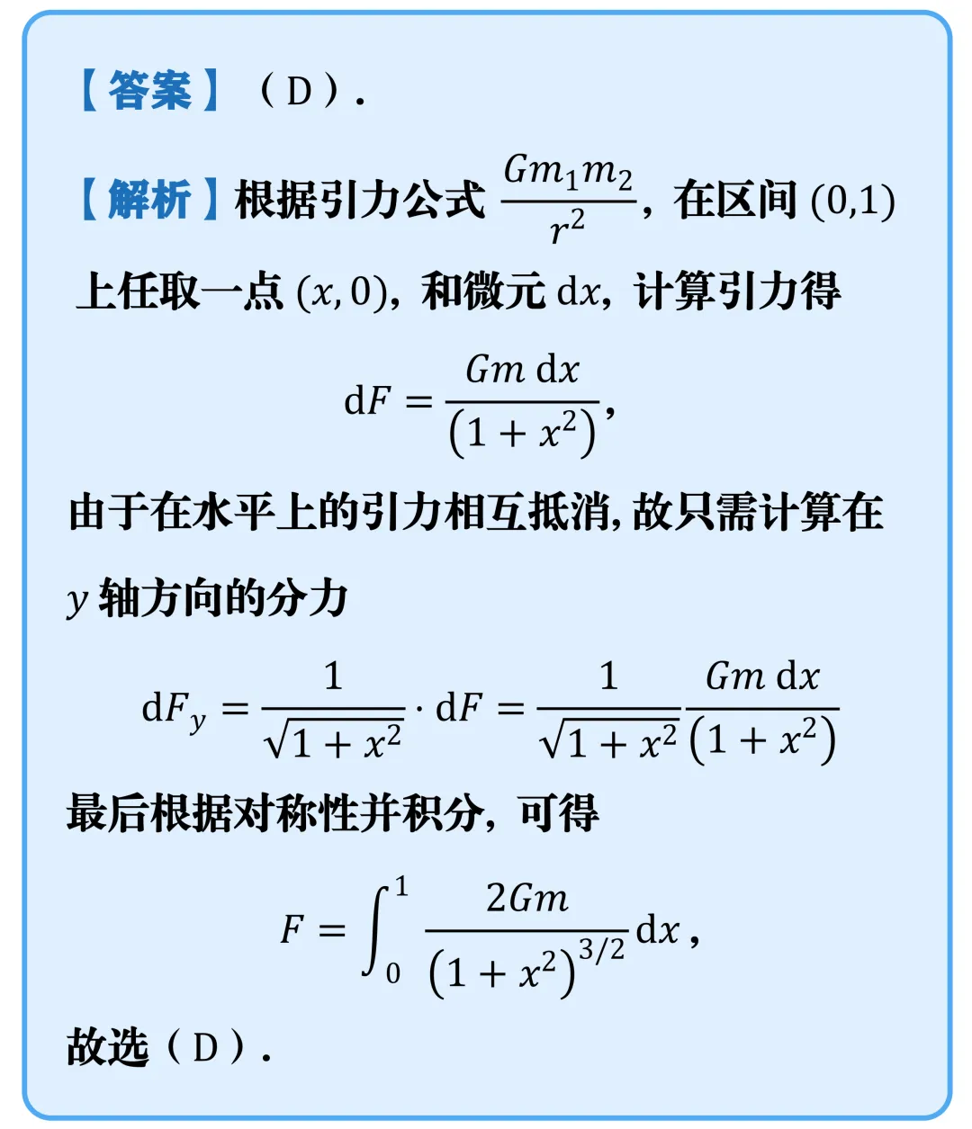 >高等数学每日一题:定积分的物理应用(26考研真题,数一数二考点)
