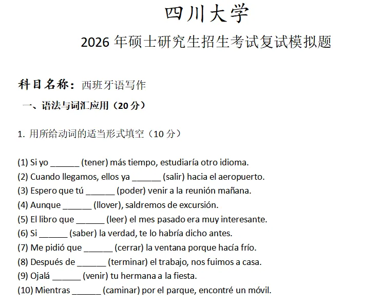 >四川大学西班牙语写作考研复试真题模拟