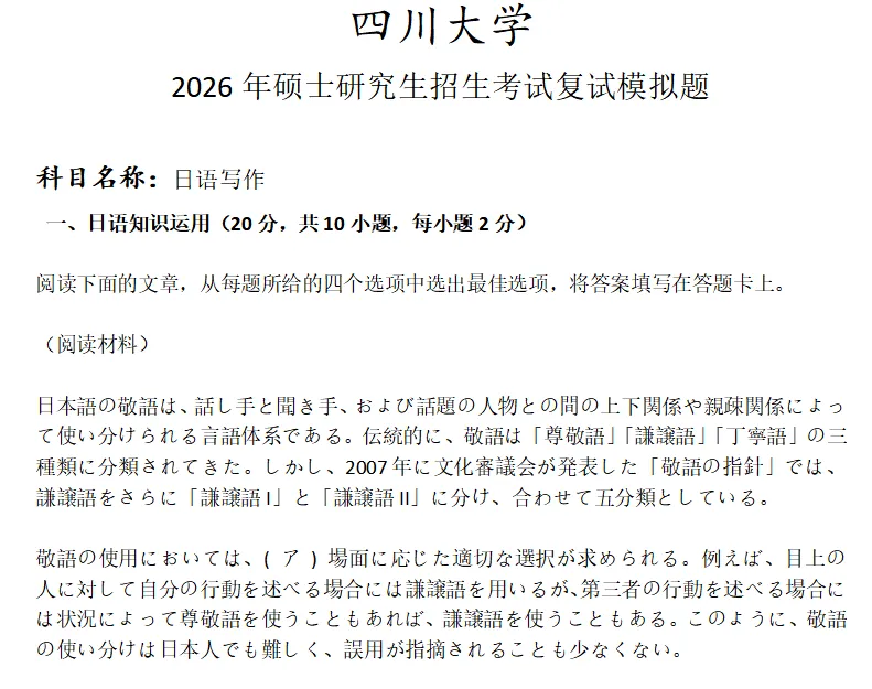 >四川大学日语写作考研复试真题模拟