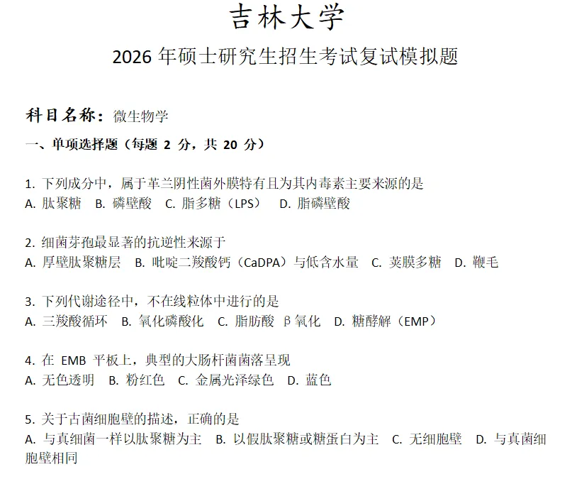 吉林大学微生物学考研复试真题模拟含答案
