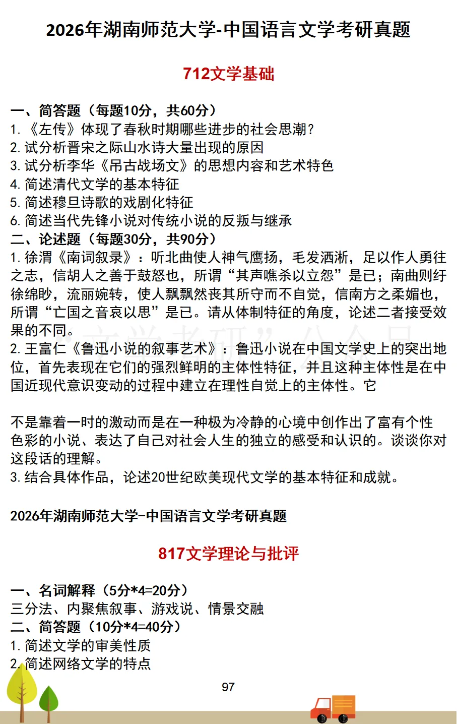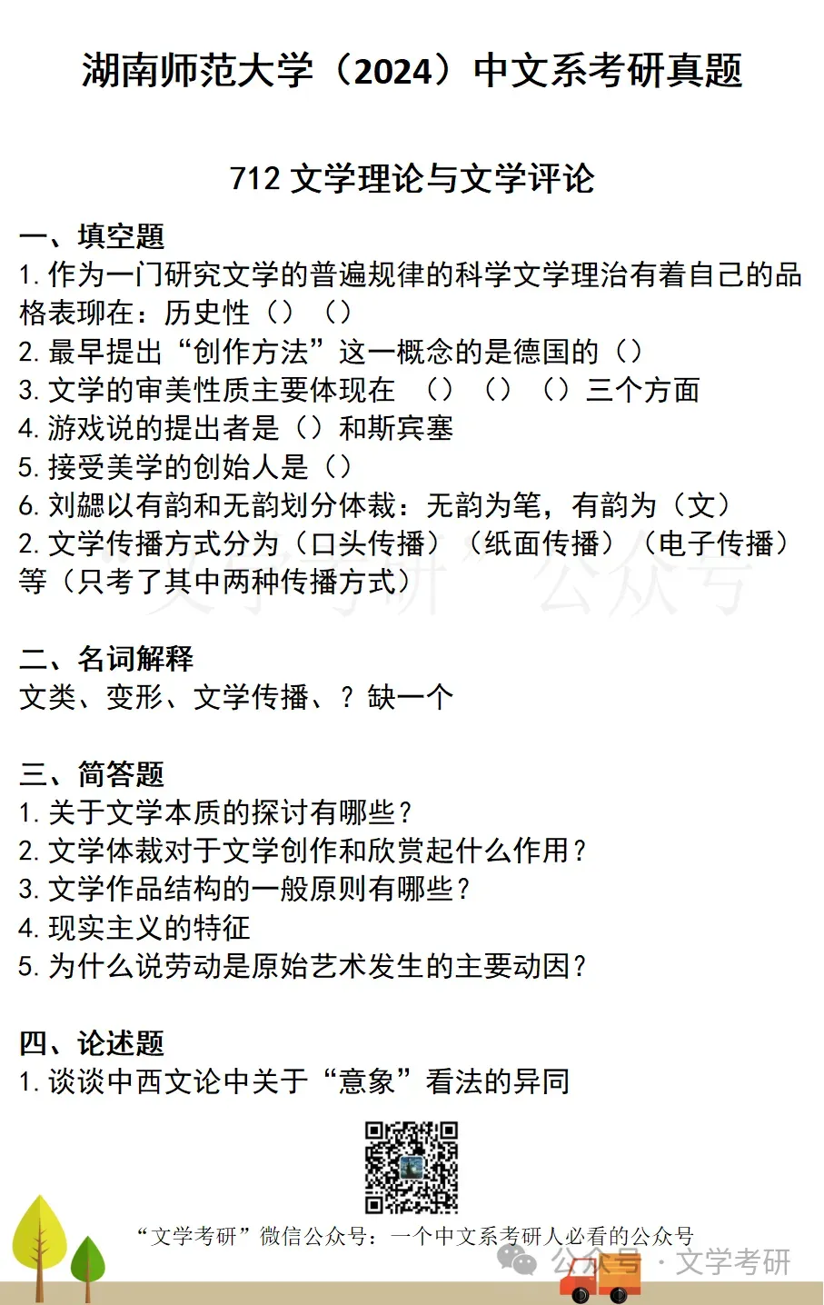 2017年湖南师范大学文学考研712文学理论与文学评论真题