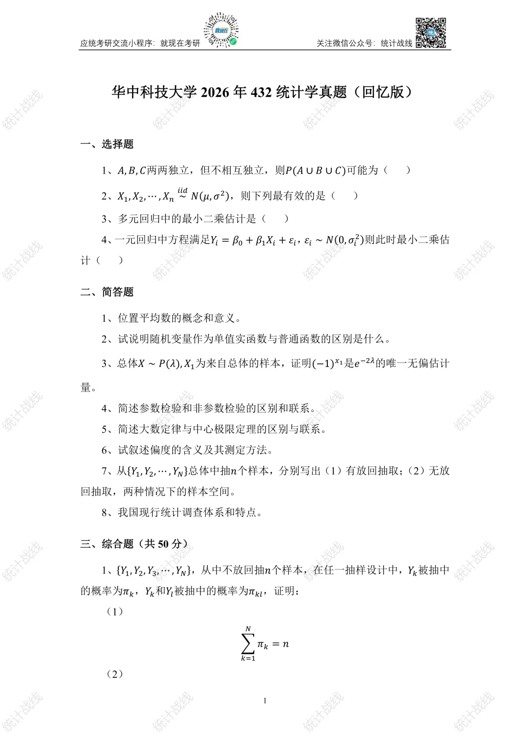 笔试:微积分学、线性代数、概率论与数理统计;面试:个人口头陈述+综合素质能力+外语听说能力