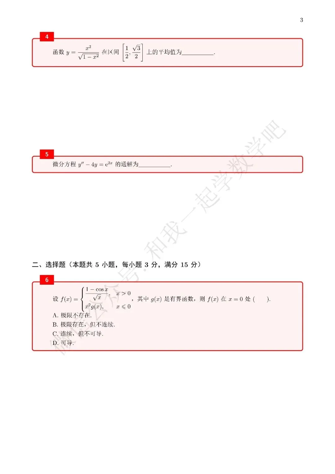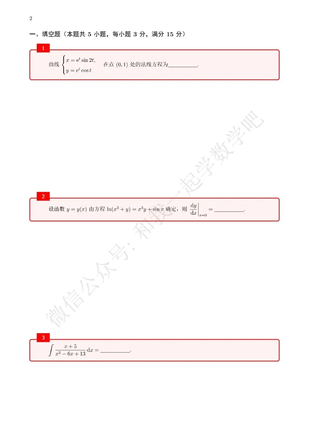 为了方便各位小伙伴们刷题,我重新排版了99年数二的真题,在每道题下面都增加了空白,方便大家写答案,记录相关知识点。